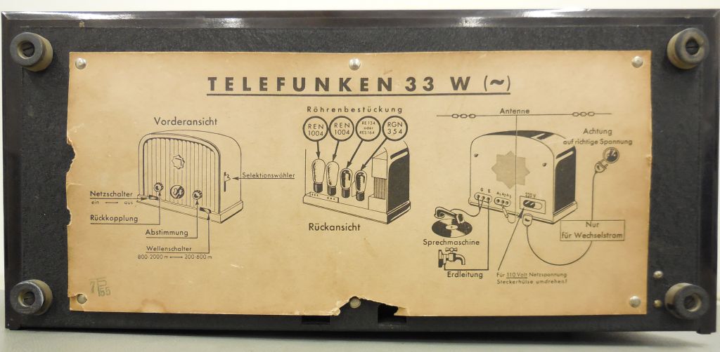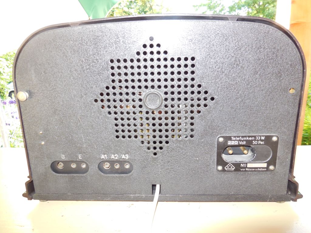 heute brachte mir ein Kollege einen Telefunken 33 W. Der Zustand ist sehr gut. Auf der Rückseite fehlt nur eine Befestigungsschraube.