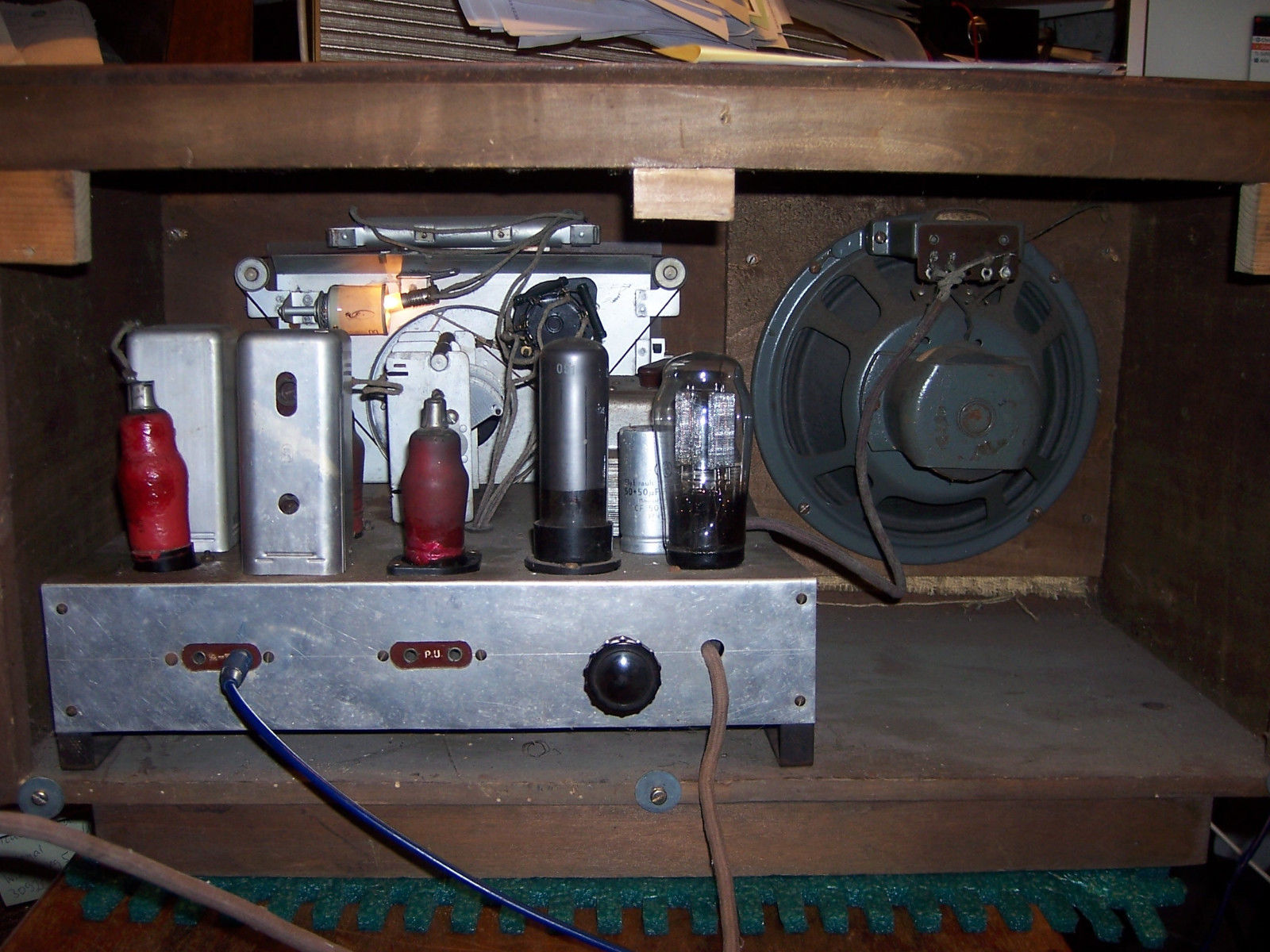 Was ist die aktuelle Röhrenbestückung? Bei der Oszillator-/Mischröhre sieht es stark gebastelt aus. Die Endröhre scheint eine genietete Fassung zu haben (?) - und diese Bauform kenne ich so eigentlich v.a. von der EL11. Stahlröhren wurden aber fast nur in Deutschland verbaut - Mischbestückungen eher selten. Oder eine Fabrikation in Mangeljahren kurz vor oder nach Ende WWII?