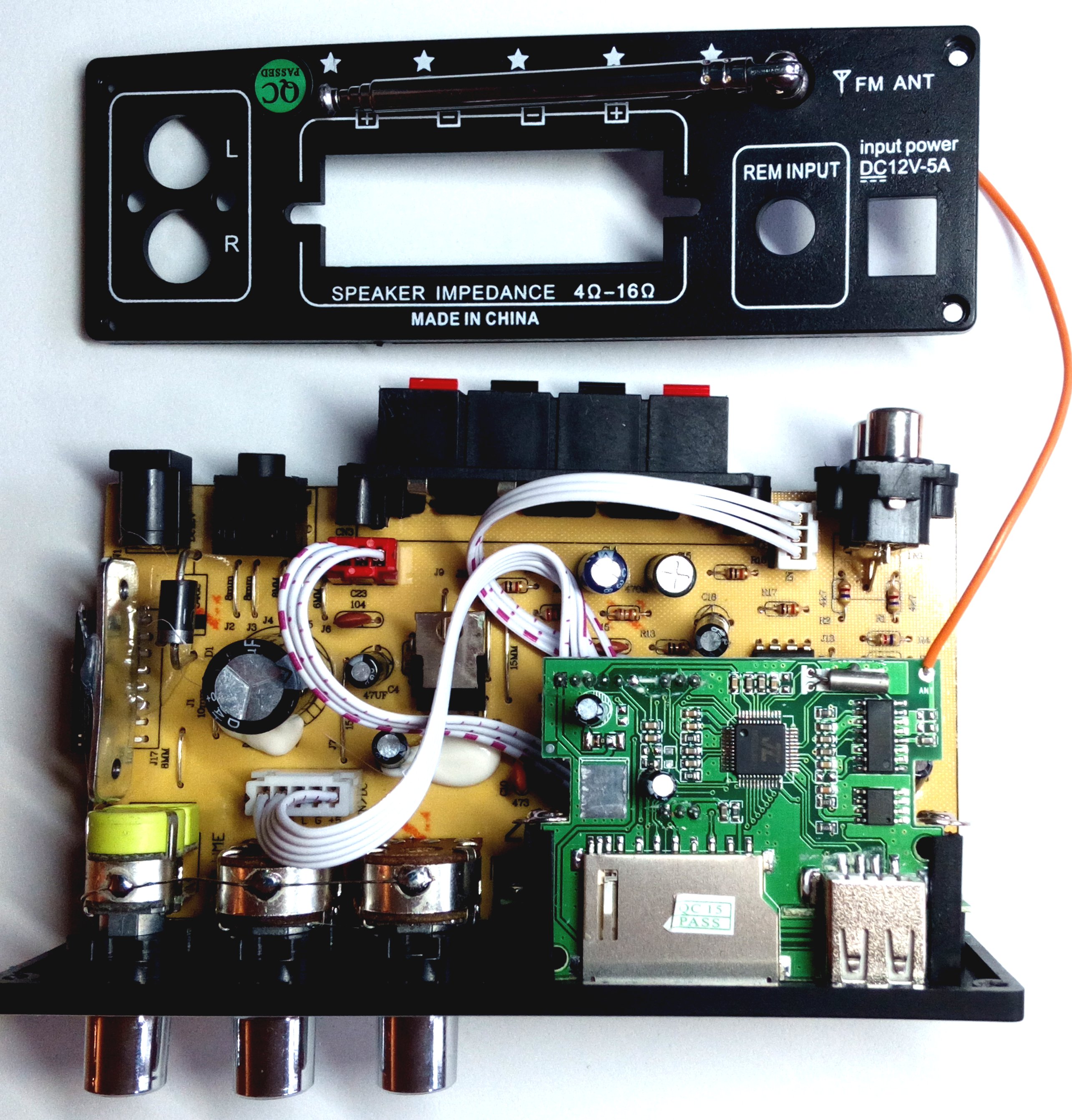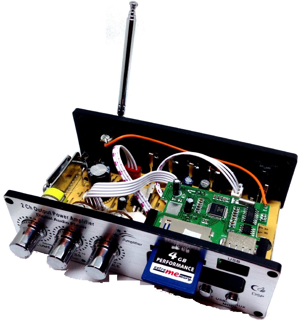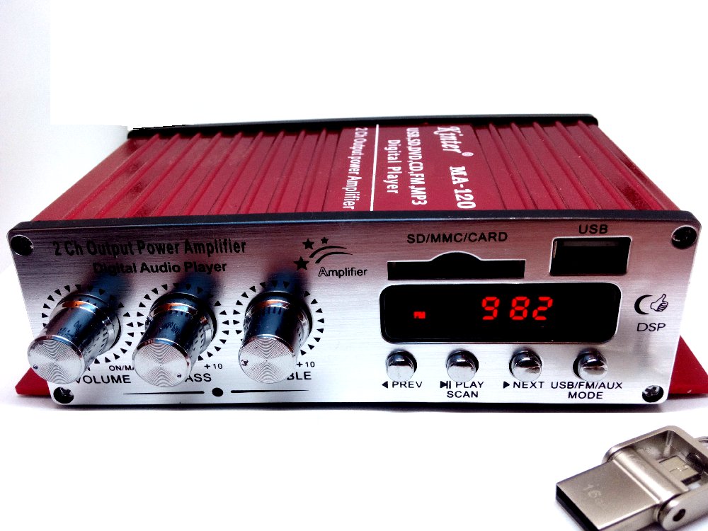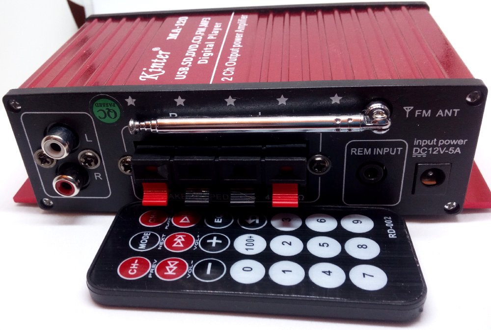 Daten: Input 12 V DC Output Power 2 x 20 Watt (1 kHz) Klirrfaktor 0,05 % bei 4 Watt 1 kHz Regelumfang Höhen / Bass 12 dB Eingangspegel 220 mV/47 k Disk Format MP 3, FM FM Frequenzbereich 87,6 bis 108 MHz. Fernbedienung. Preis: € 11,29 Versandkostenfrei direkt von unseren chinesischen Nachbarn...