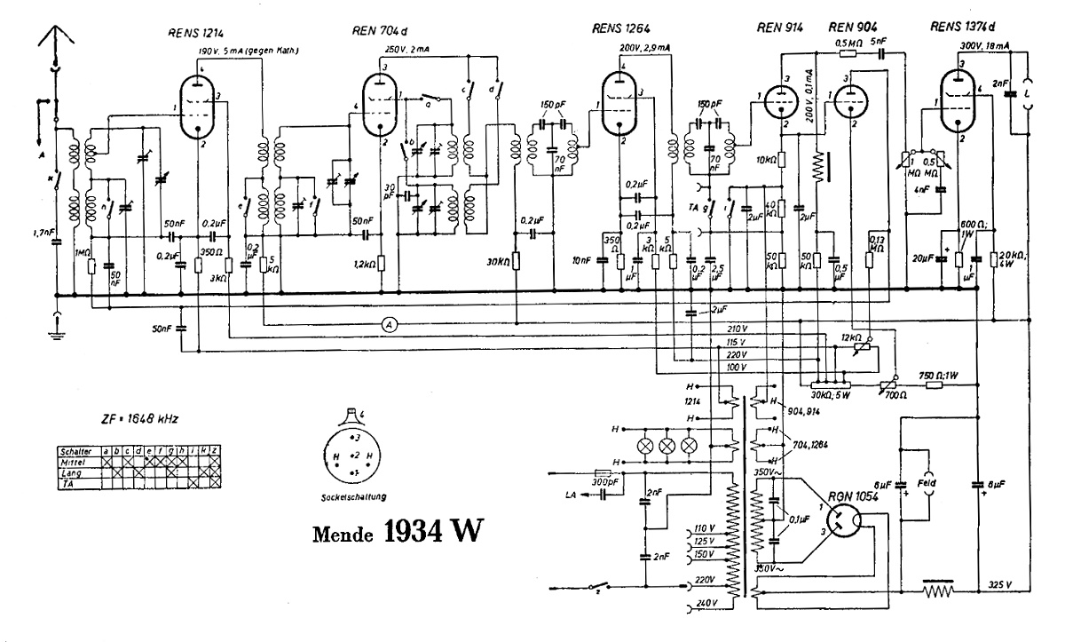 für die Freude besonderer historischer Radio-Schaltungen hier das Schaltbild des Mende 1934W von 1933.