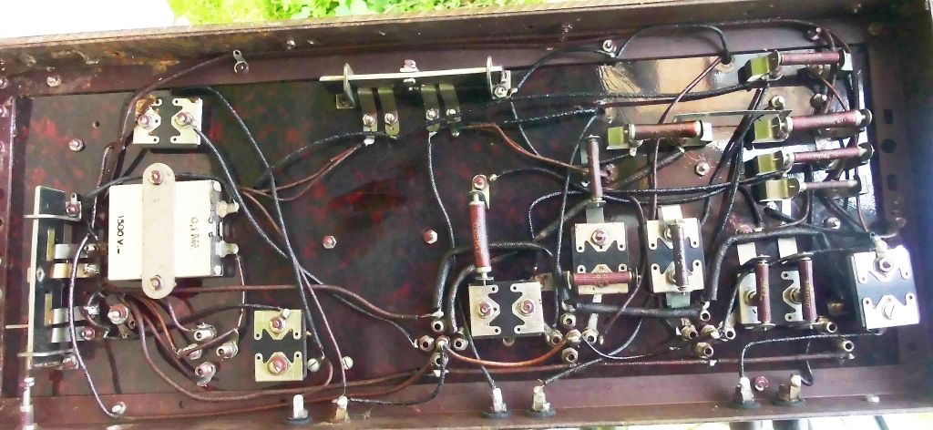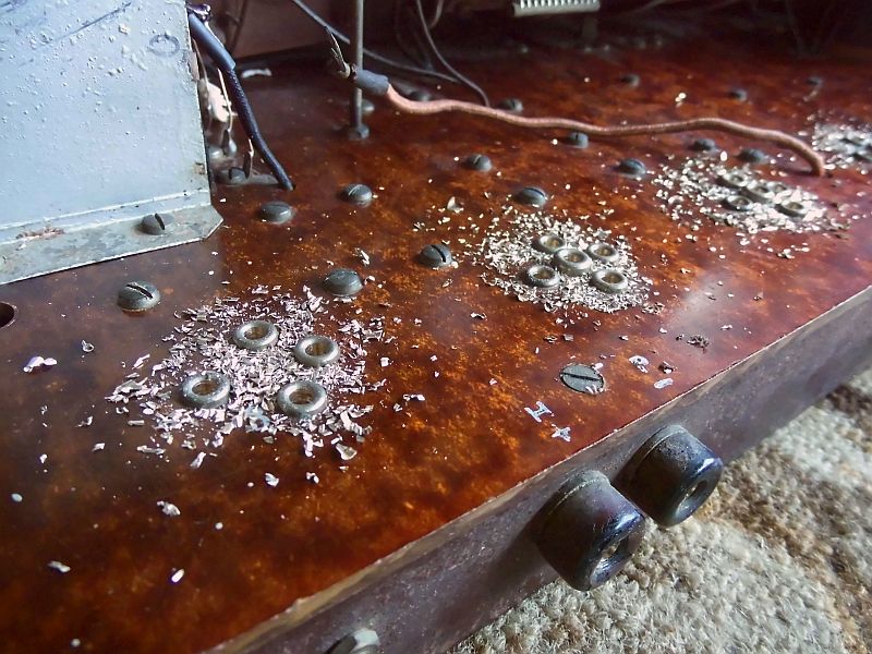 Man sieht, sehr verstaubt war das alles, aber zum Glück unterhalb doch noch gut erhalten! Ich sehe keine, in der Vergangenheit gemachte, Reparatureingriffe. Prima. Weil wenig Stahl verwendet wurde, und die Montage- plus Frontplatte aus Pertinax gefertigt wurde, ist kaum Rost anzutreffen. Es musste wohl alles gut gesäubert werden.