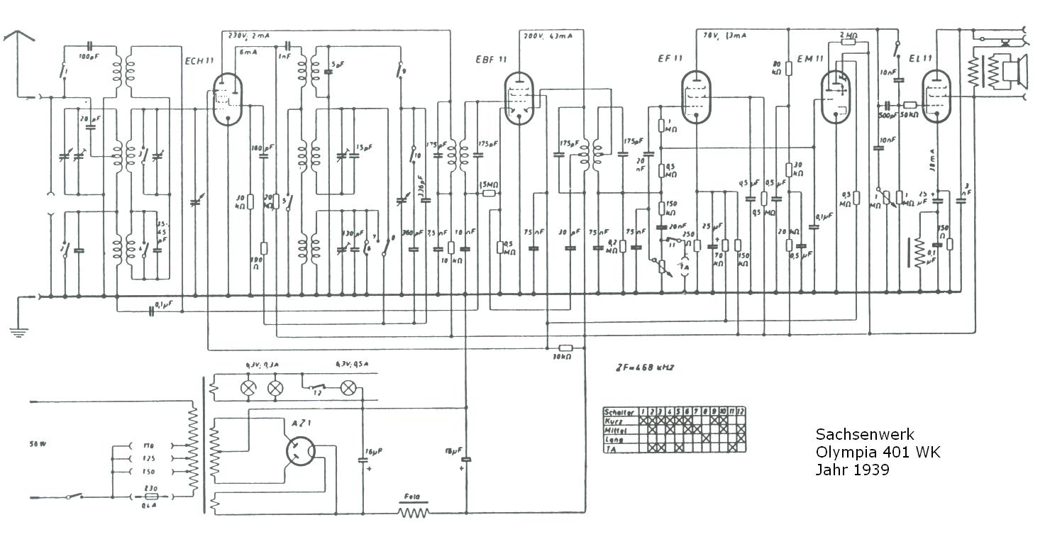 Already fixed the problem The type is a Sachsenwerk 401 WK Olympia (still searching for more parts, see other topic and foto's) The transformer was connected in the wrong way (by me) I was a bit confused by the speaker system as part of it plays a role as 'feld spuhle' for the pre-magnetisation,and this is in series with the speaker transformer.