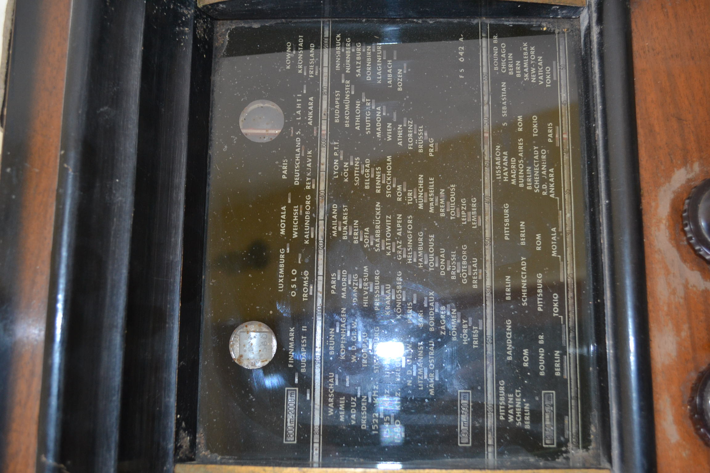 die Skalenbeschriftung zeigt eigentlich eine deutsche Beschriftung, Beispiel Breslau oder Königsberg. Der Zettel auf dem Rückseitenfoto ist schwer zu lesen, taucht aber controle und francaise auf. Auch die Lautsprecher zeigen französische Texte. was steht denn auf der Rückwand?