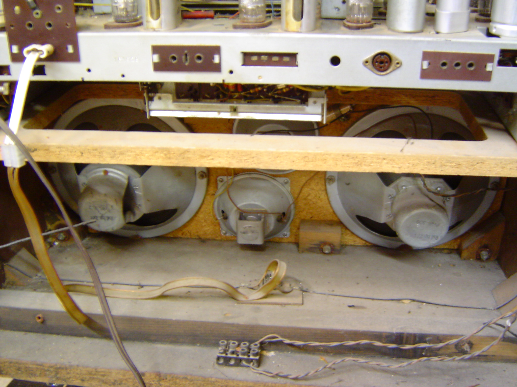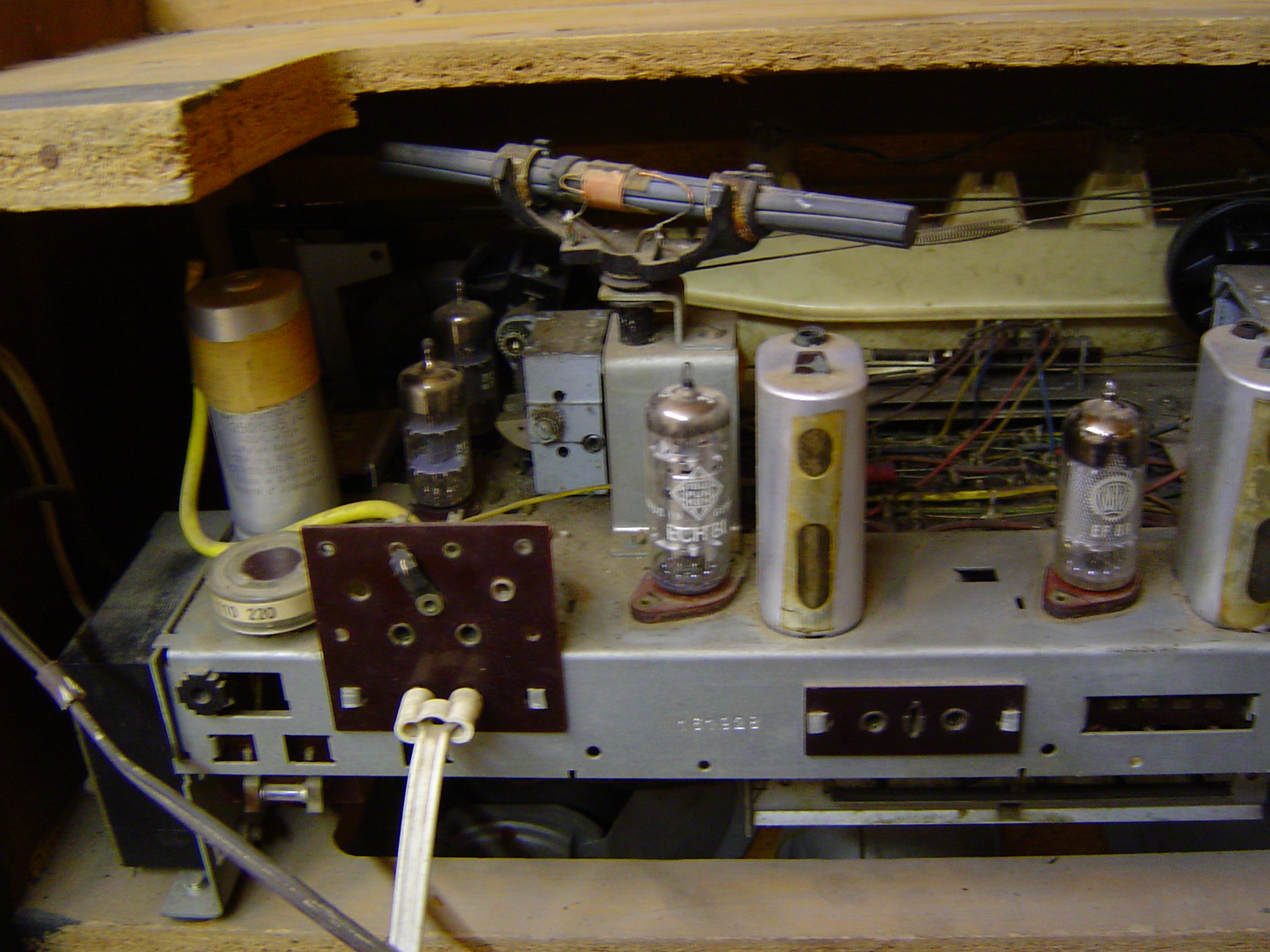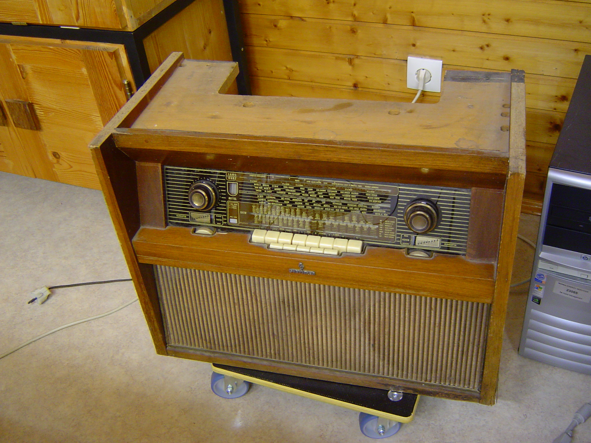 Das hier gezeigte Gerät hatte keine Rückwand und stammte laut Vorbesitzer aus einer Schrankwand. Keine Ahnung ob das mal eine Musiktruhe/Musikschrank war oder wirklich in einem Schrank verbaut war. Dessen Angaben waren sowieso bewusst falsch, daher ist die Aussage der Schrankwand mit Vorsicht zu genießen.