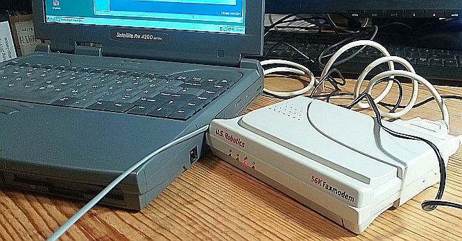 Das Notebook ist über 20 Jahre alt und hat noch eine RS-232 Schnittstelle, die das alte Modem benötigt. Man muss Spaß mit der alten Technik haben. Sonst macht das keinen Sinn mehr.