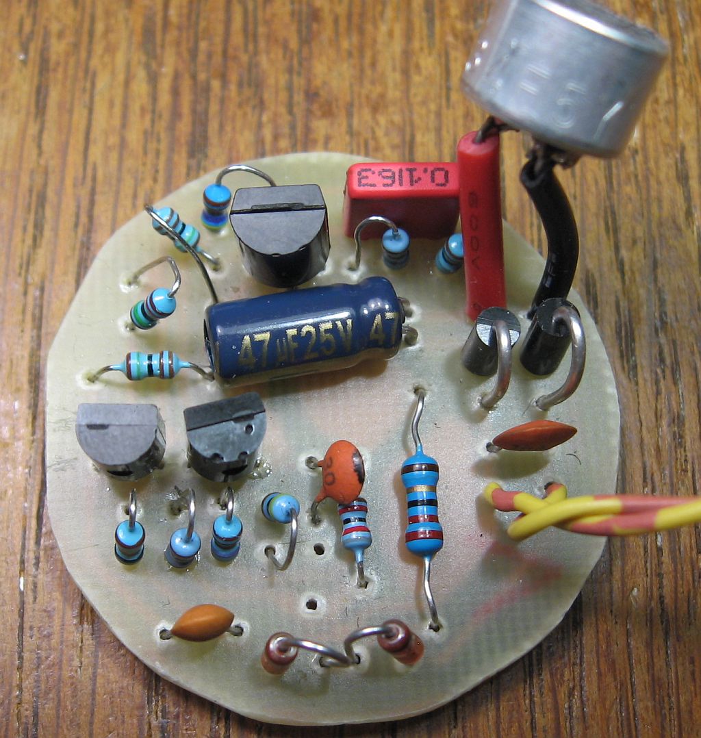 7. C6 wurde auf 22nF verkleinert. Der Wert ist unkritisch. Entfernt man C6, können Verzerrungen durch Rückkopplungen auftreten, wenn man das Spiralkabel mit der Hand umfasst.