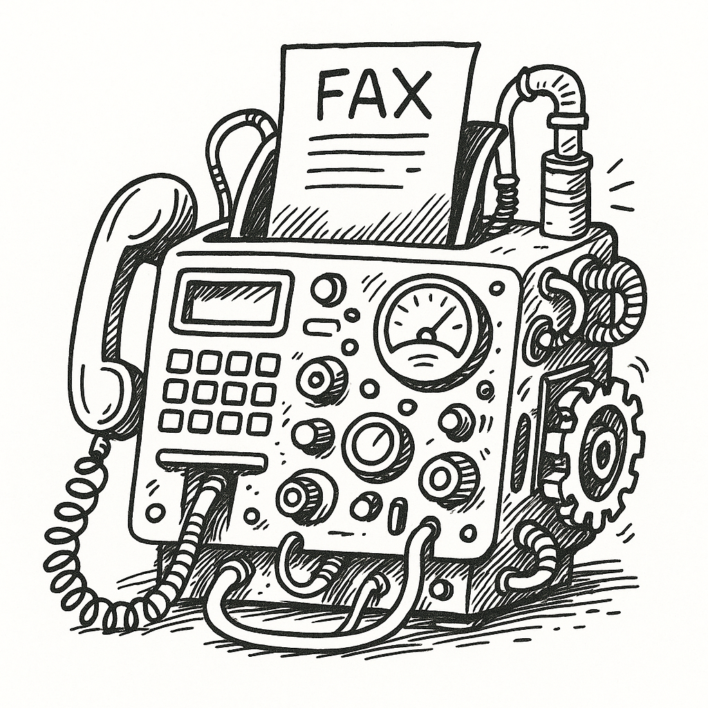 Das nachfolgende Bild habe ich heute von ChatGPT erstellen lassen. Ich darf es frei verwenden. Der Prompt lautete: "Eine witzige Skizze, also eine Strichzeichnung, schwarzweiß einer Faxmaschine, die übertrieben technisch ist. Ich will sie in einem Fax zum testen einbauen." Die Welt der KI wird immer spannender.