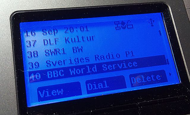 Diese Stationen lassen sich über Telefonnummern erreichen, die ich in das Telefonverzeichnis kopiert habe. Die einzelnen Stationen lassen sich dadurch bequem über die Kurzwahltasten anwählen. Man könnte auch die Radiostationen mit alten Wählscheibentelefonen abhören. Aber das macht auf Dauer keinen Spaß, weil man den Hörer in der Hand halten muss.