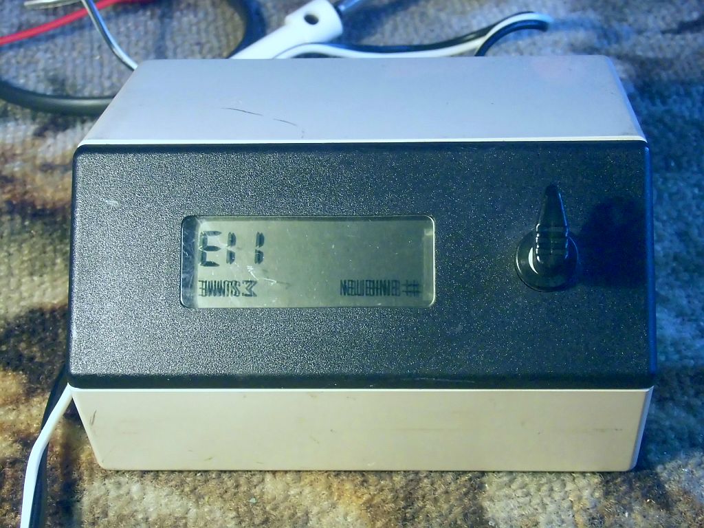 Diesen habe ich beim Aufräumen gefunden. Um den mal zum Spaß auszuprobieren, kann mir jemand sagen, auf welche Klemmen ich eine Spannung geben muss. Wieviel Volt? Ich denke, dass auch noch ein 16kHz Puls zusätzlich eingespeist werden muss. Dieser steuert dann den Zähler an.