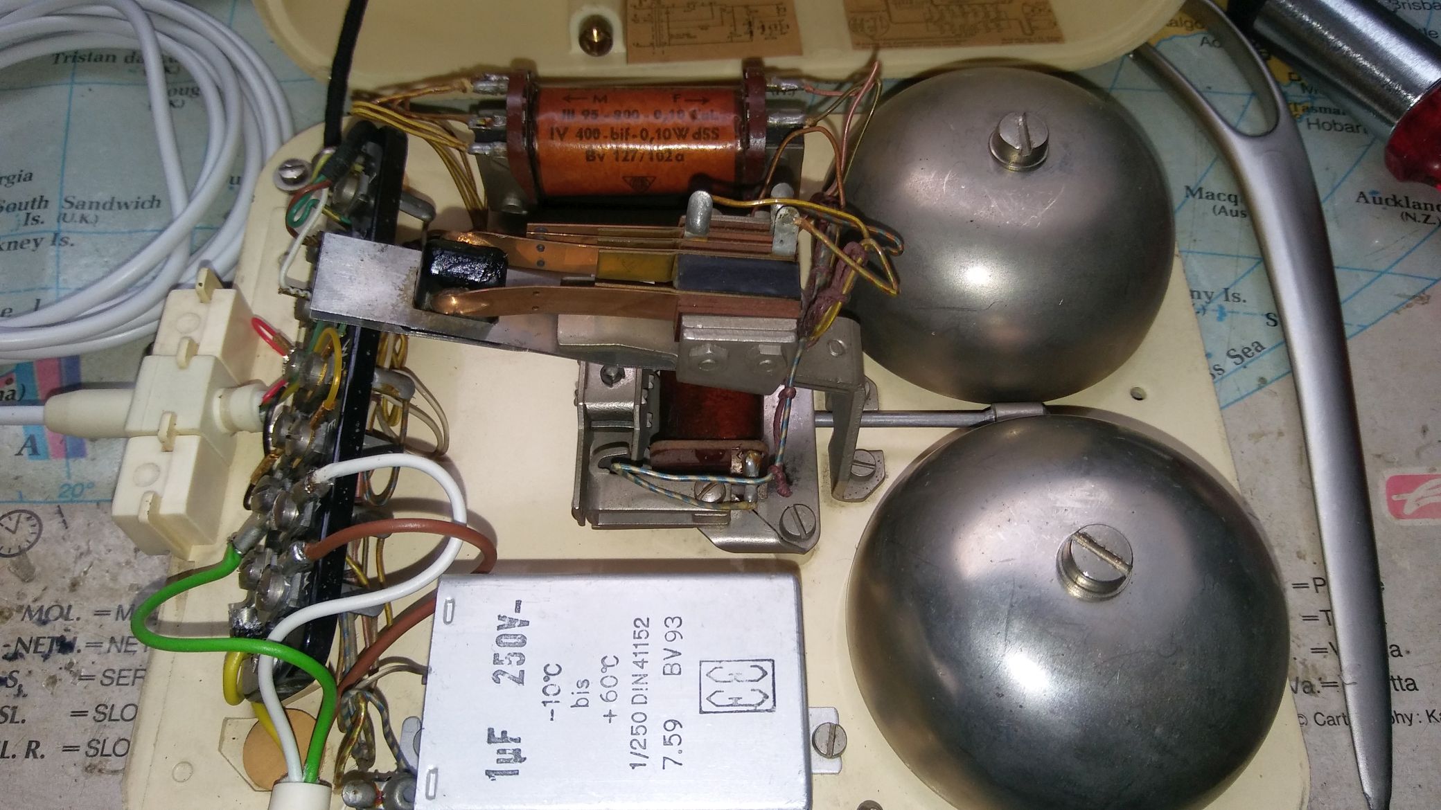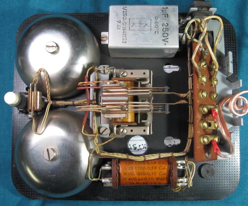 Zum anderen, in meinem Telefon war auch wie im Bild oben zu sehen, so ein rotes zusammengerolltes Stückchen Papier unter dem Nummernschalter geklemmt. Ich frage mich, welchen Sinn dieses hat? Bei mir klemmte es etwas weiter Richtung Schraube.