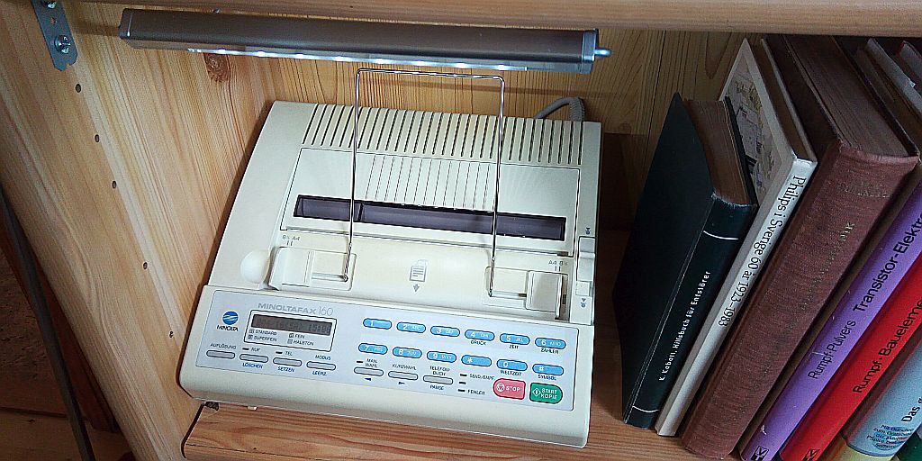 Das 30 Jahre alte Minoltafax 160 im Regal