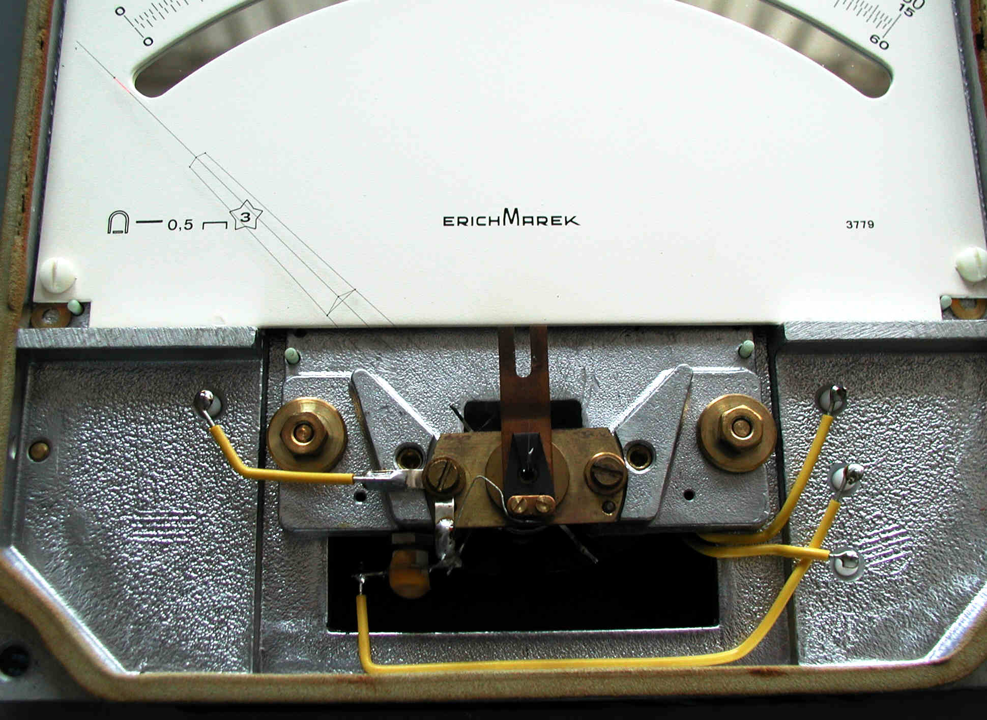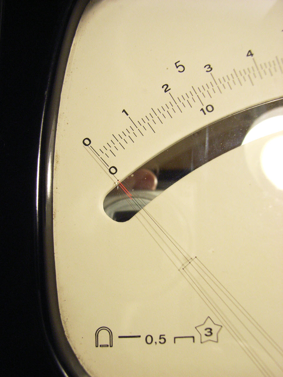 Hallo Klaus, danke für Dein Interesse an meinem Goldstück. Die Zeiger von Marek sind tatsächlich aus Glas. Kunststoff, der für so etwas feines und leichtes infrage käme, war damals nicht erhältlich. Wie Marek es hinbekommen, hat das Glas unten schwarz und an der Zeigerspitze rot zu färben, ist mir schleierhaft. Ich werde mal versuchen, mit der Makroeinrichtung einen Zeiger deutlicher zu zeigen. Ich muß noch etwas mit üben, um eine bessere Beleuchtung hinzukriegen. Es gab auch andere Instrumente mit Glaszeiger wie ich bei der Zerstörung eines Normatest-Vielfachmessers in den 1970er Jahren leider feststellen mußte, als nach kräftiger Überlastung (statt Spannungs- Strombereich eingeschaltet) der Zeiger in kleinen Brocken auf der Skala herumlag.