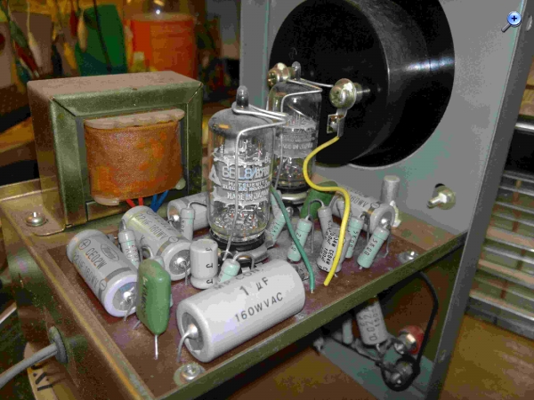 Nicht nur kleine Spannungen kann man damit messen. Das Teil geht bis 300 V~. Das Gerät wird für RMS Wechselspannungsmessung gebraucht. Ein NF Voltmeter, das auch höhere Frequenzen schätze so bis 20 KHz, richtig messen soll. Aufgrund des Aufbaus wird es ein Teil im Low-Cost Bereich gewesen sein. Trotzdem heute noch brauchbar wenn es kalibriert werden kann. Praktische Anwendung heute die Messung kleiner NF Spannungen bis in den mV Bereich hinunter.