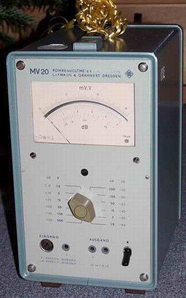 Hallo, vom Verlobten meiner Tochter habe ich das Röhrenvoltmeter MV20 geschenkt bekommen. Es ist in einem sehr guten Zustand, ich habe lediglich den Griff neu vernäht und gefettet.