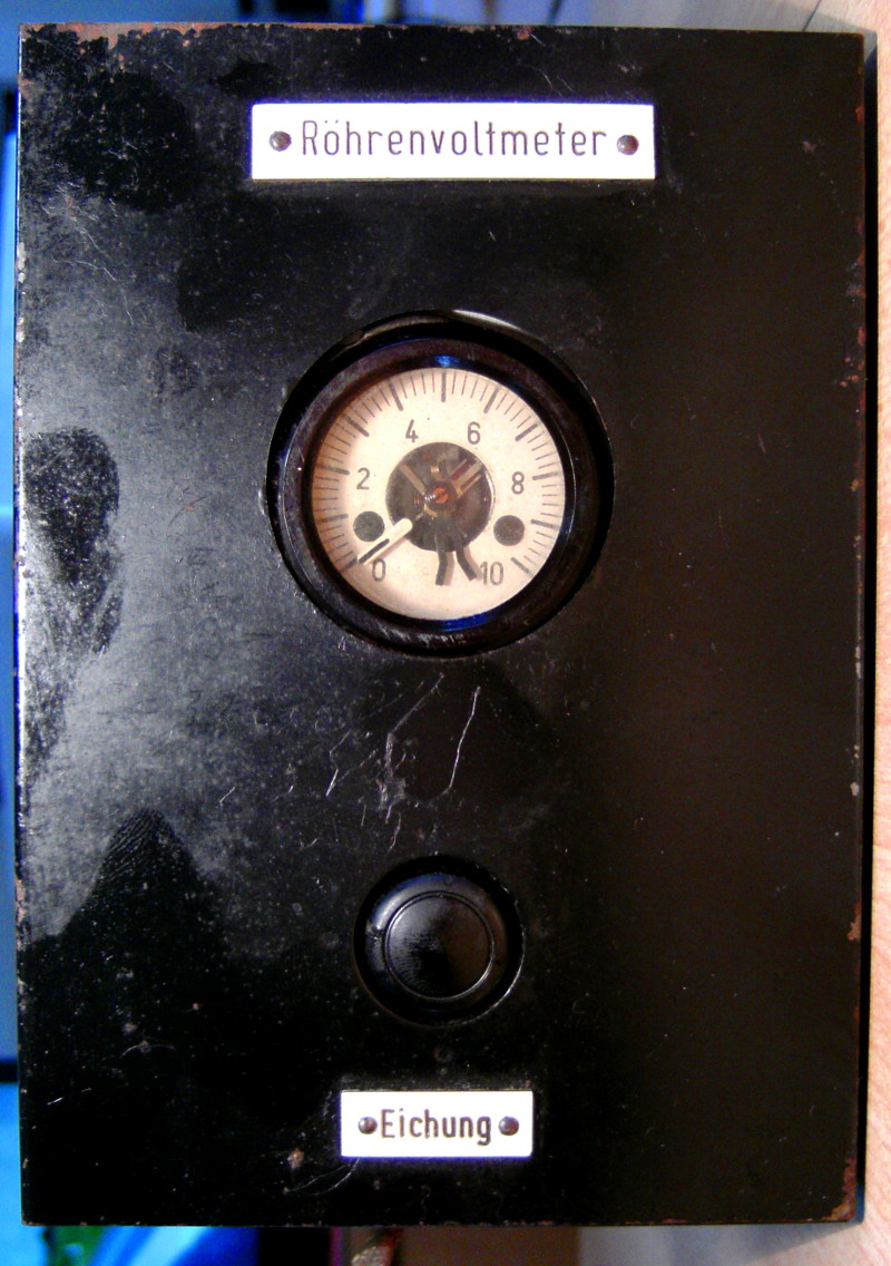 Ein Historisches Röhrenvoltmeter. Es muss aus der Zeit des 2. WK sein, im inneren werkelt eine RV P 2000 der Wehrmacht. Das ganze scheint noch im Originalzustand zu sein. Auf eine Instandsetzung verzichte ich, nur etwas gereinigt. Nur gucken, nicht mit arbeiten.