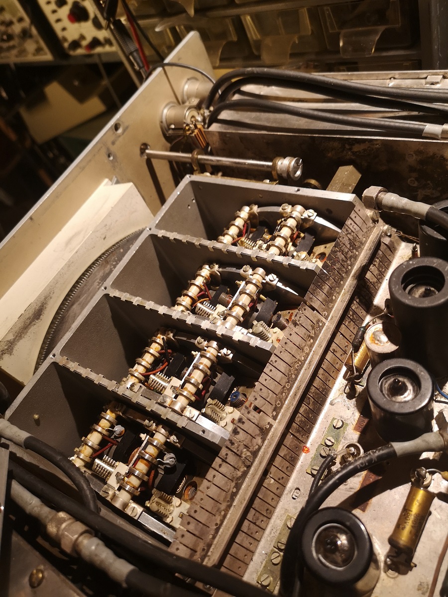 Theorie zur Verbastelung. Da hat wohl jemand drauf spekuliert eine AGC einzubauen ??? Als echter Pegelmessempfänger hat er sowas nicht, sondern schaltbaren Attenuator. Es gibt aber einen Regelspannungseingang an der Front, ebenso den ZF Ausgang, warum also nicht einfach was dranstecken und schon hat er Schwundausregelung zum Radiohören ... das wurde jedenfalls dann dochnicht gemacht und teildemontiert so gelassen. Ich hab den Ausgang wieder an seiner Frontbuchse angeschlossen ( 60 Ohm )