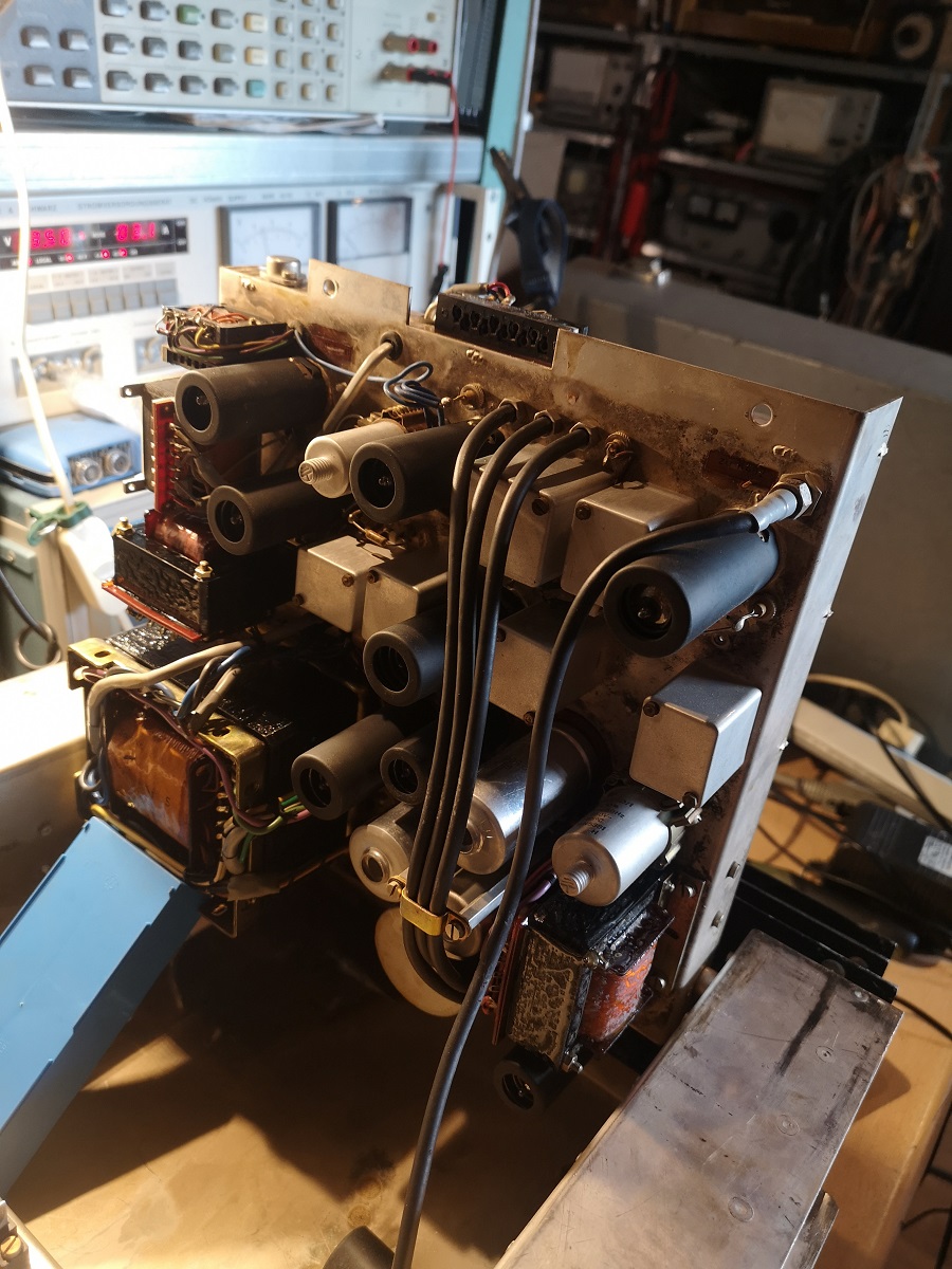 Am 180V Messpunkt hat er 231V, bei starkem Signalempfang 237V. Also Überspannung unstabil. Der Poti für die 180V justage reagiert garnicht. Der 85A2 Stabi ist erneuert und leuchtet 84,59V