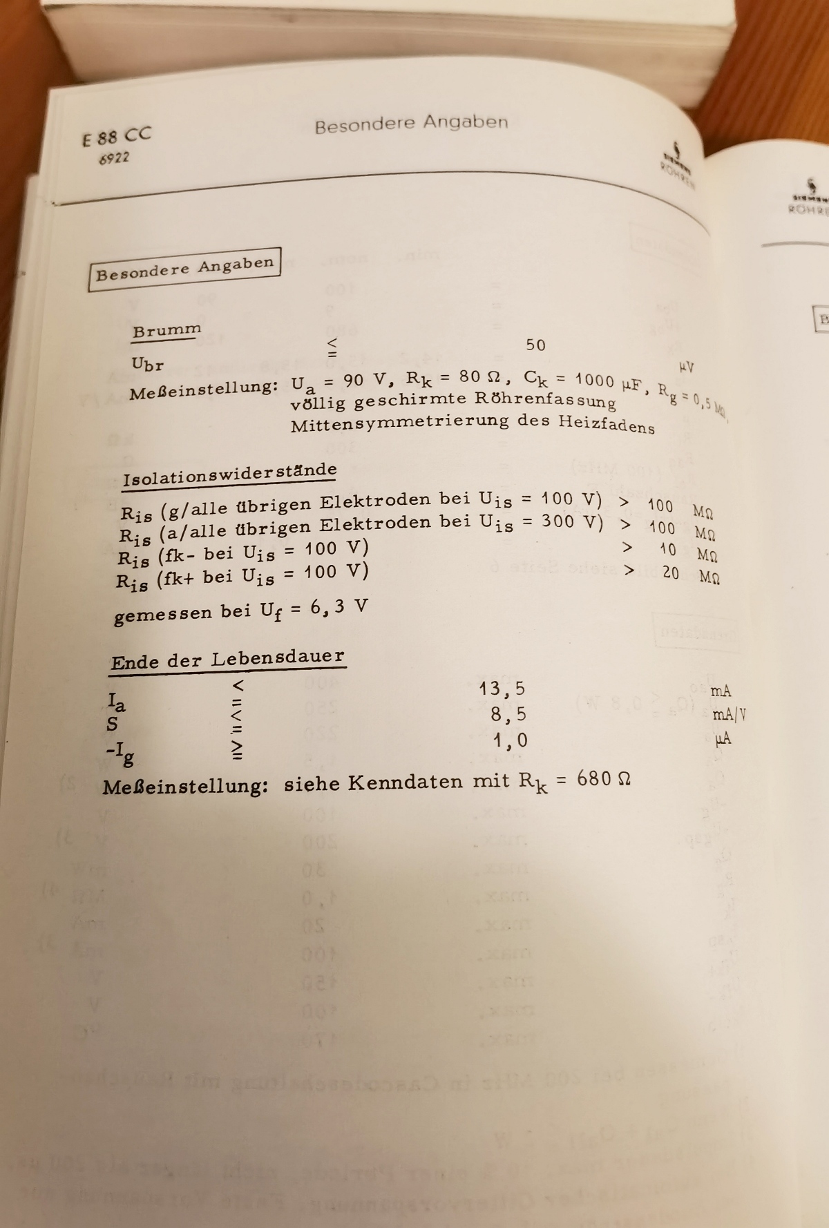 Hier mal das von Siemens aus 1964. Beispiel E88CC: Da gibt es Werte sogar für Ia min.14,2mA, nom. 15mA und max. 15,8mA. Angabe auf der Neuberger Prüfkarte Ia 15mA.