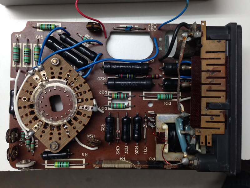 Hallo zusammen, Mechanisch ist es nicht defekt, im Gegenteil man sieht ihm das alter fast nicht an. Defekt ist das Messwerk, da ist der Draht gerissen welche die Spule auf dem Magneten zentriert, Das Batteriefach ist fast komplett weggegammelt, die kleinen Shunts und ein Übertrager sind in Folge von hohem Stromfluss nur noch in Bestandteilen vorhanden und natürlich verbrannte Leiterbahnen usw. Dieses Gerät hat irgendwo einmal ziemlich gelitten, vermutlich unter falscher Bedienung, so dass eine Reparatur nicht ganz so einfach wird.