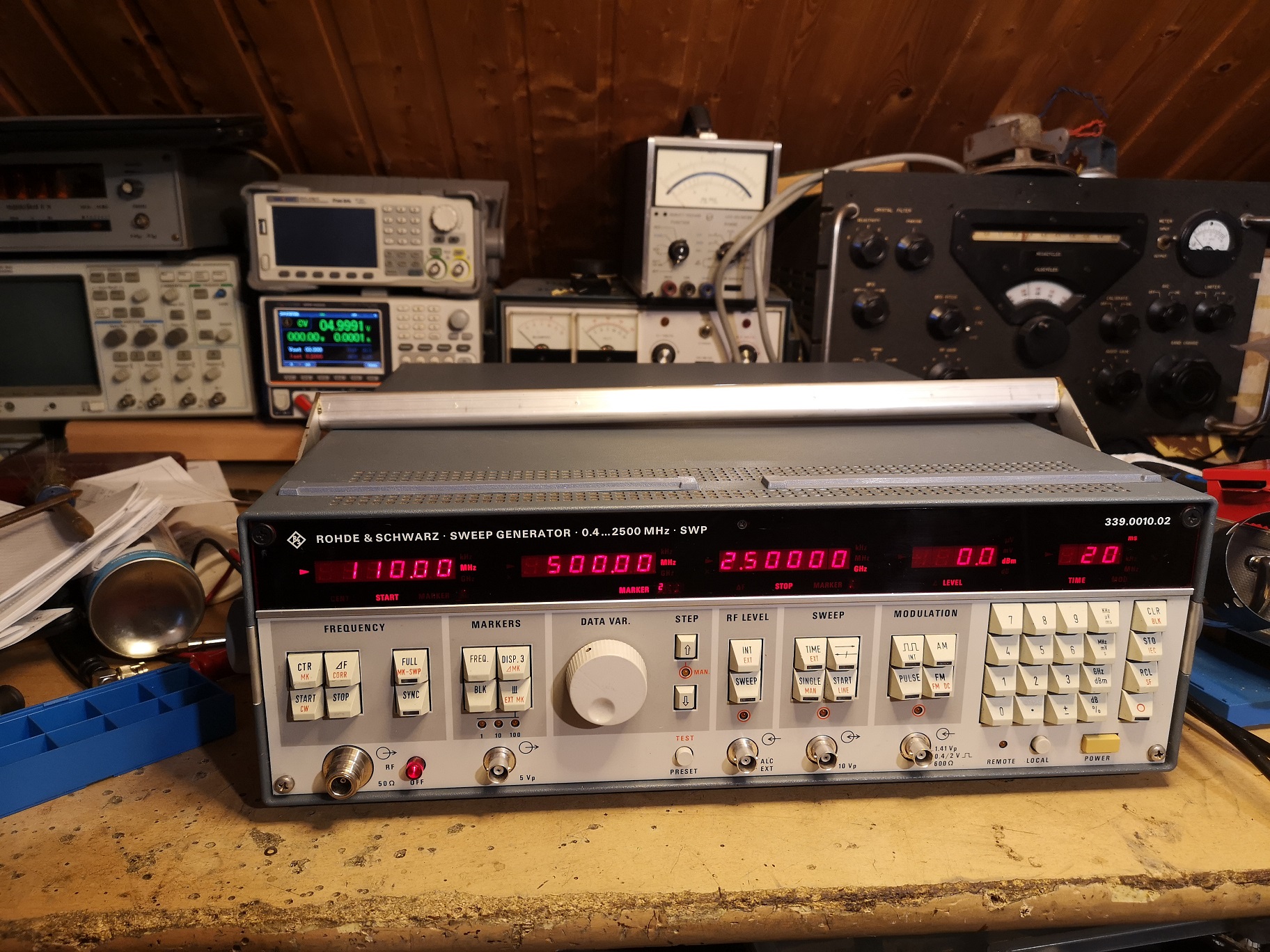 SWP sind GPIB steuerbare Prüfgeneratoren . sie bieten Wobbelbetrieb in frei wählbaren Frequenzbereichen innerhalb ihrer Bandbreite bis hin zum Full Sweep, unmod. ,AM+FM. Das Tempo des Ablaufs und die Pegelhöhe sind programmierbar. Ausgang ist ein N, 50Ohm.