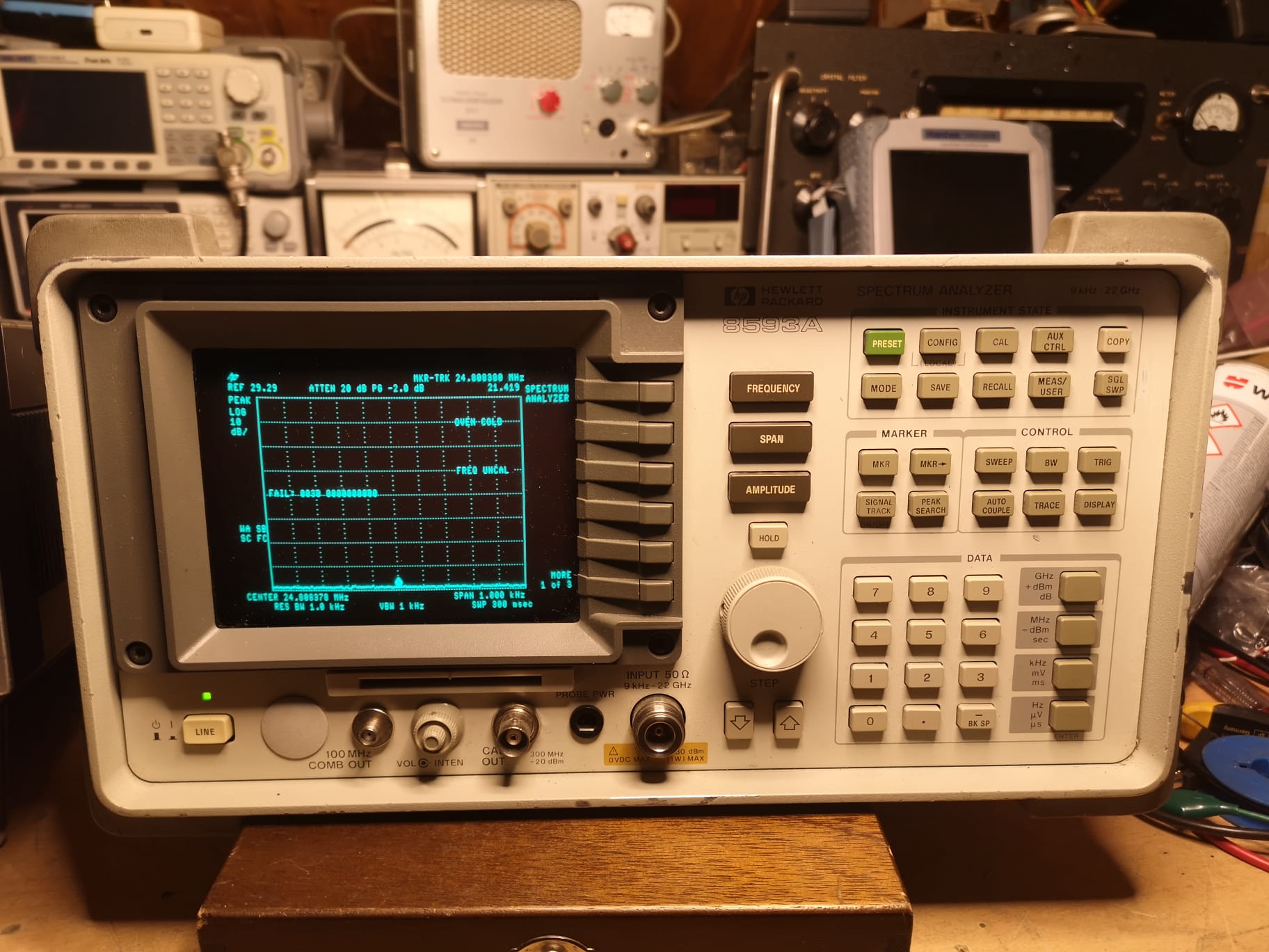 Der hier ist ein hp 8593A gebaut 1991.