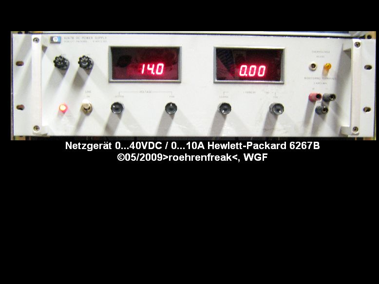 gerade noch rechtzeitig konnte dieses feine Hewlett-Packard DC-Power Supply 6267B vor der Verschrottung gerettet werden. Nach einer gründlichen Reinigung und Funktionskontrolle wurden die Analog-Anzeigen gegen digitale ausgetauscht weil mit fast 50 die Kupplung des Auto-Focus-Sevos meiner Augen leider schon leicht durchrutscht und 0 bis 40 Volt am Zeiger abzulesen eine mittlere Herausforderung wurde. Die Strombegrenzung ist von 0 bis 10 Ampere einstellbar, eine elektronische Sicherung schützt gegen Überlastung und Überspannung. Dank Thyristor-Vorregelung hält sich die erzeugte Verlustwärme in erstaunlich geringen Massen, einzig störend ist bei hoher Belastung ein kräftiges Knurren durch die Phasenanschnittsteuerung der Vorregelung. Die Ausgangsspannung ist megastabil und brummfrei - HP-Qualität eben.