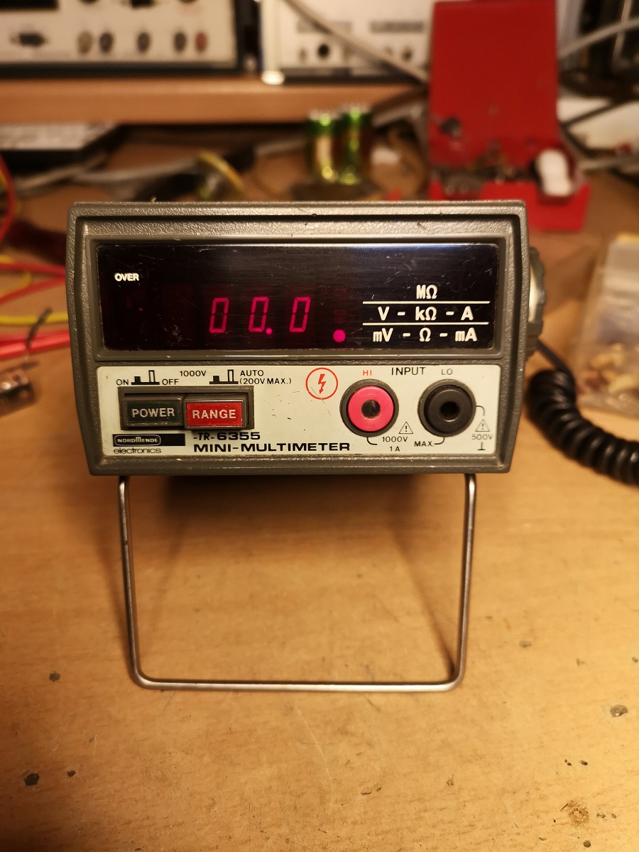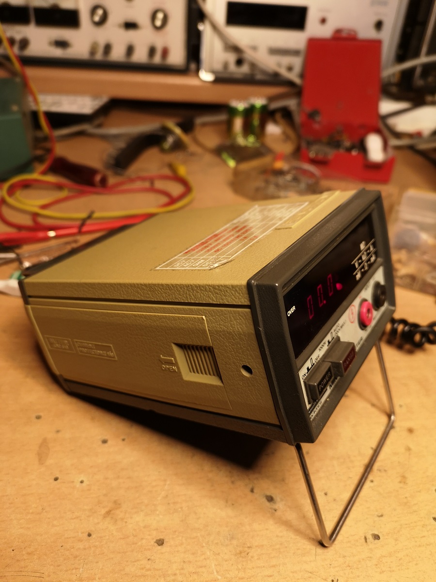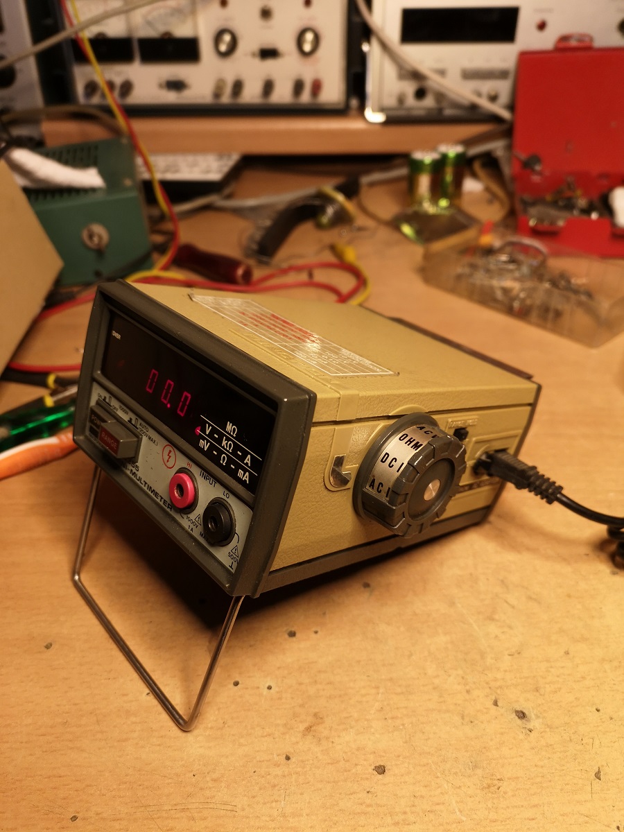Hersteller = Takeda Riken, Japan, Type = TR 6355 4 Akkus Mignon NiCd, (es nimmt ersatzweise auch Einweg Mignon) separates Ladegerät daß sich in die Rückwand schieben läßt, Led, 3 1/2 stellig.