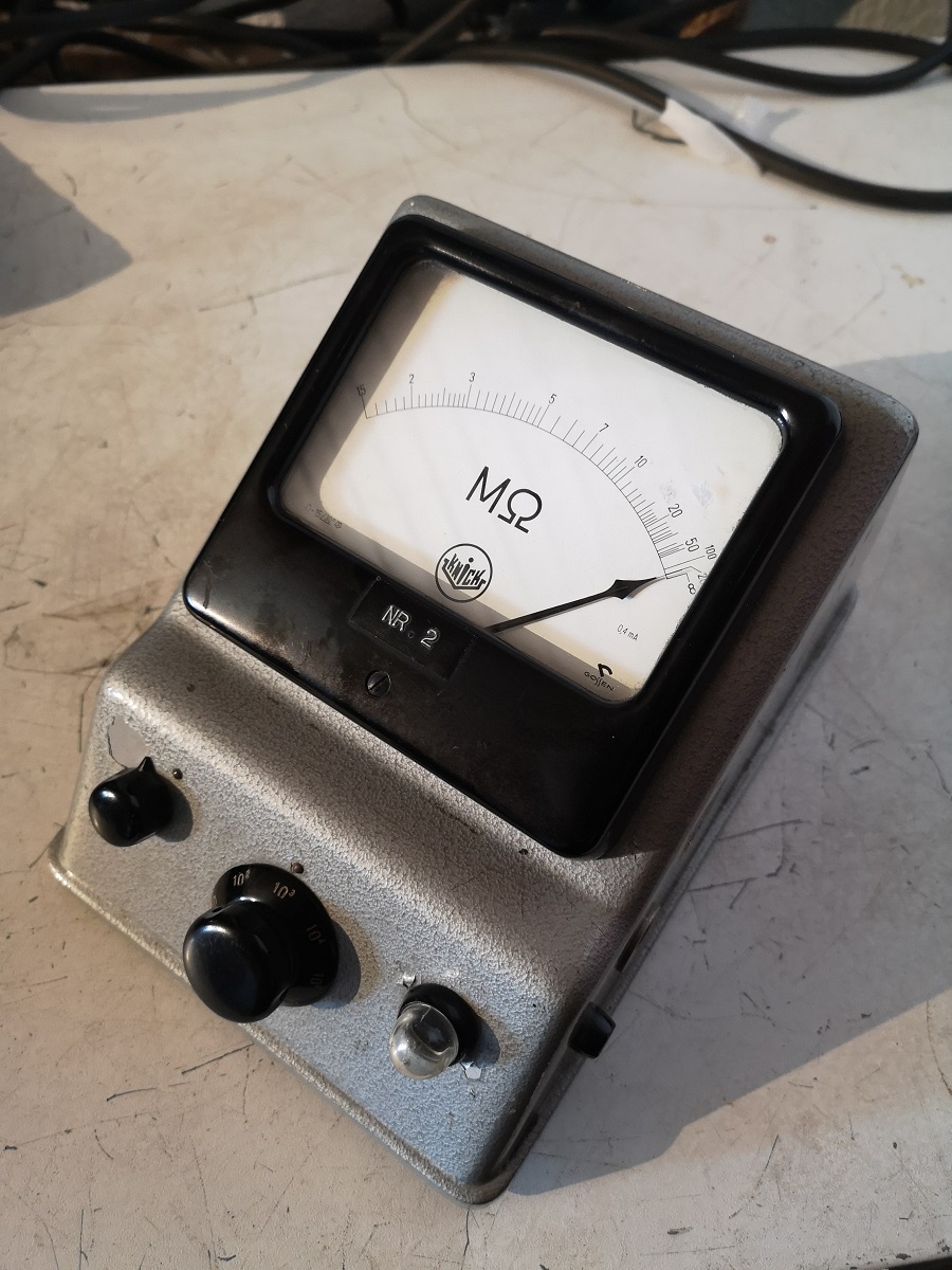 Das Ausmessen gelang recht gut, so konnte das Gerätchen dann auch im Bereich x1000 noch gut kalibriert und angepasst werden. Es arbeitet nun zwischen 2M und 20G glaubwürdig gut, oberhalb davon fehlen mir die passenden Widerstände. Die Instrument-Null wird noch erreicht im Bereich x 10hoch6 ( x 1.000.000 ), der Bereich darüber welcher der höchste ist, erfordert zwingend einen Abschirmkasten für den Prüfling, auch für die darunterleigenden Bereiche ist das wirklich ratsam.