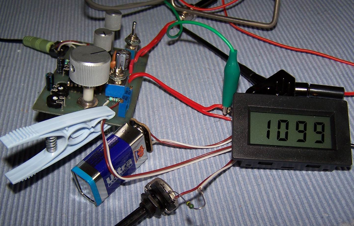 Hi, hier mal der Versuch einer einfachen Frequenzanzeige mittels eines sehr preisgünstigen (7,95Euro) Voltmeters. So ähnlich habe ich es auch an meinem Elektor-Funktionsgenerator von 1977 gemacht, klappt dort einwandfrei.