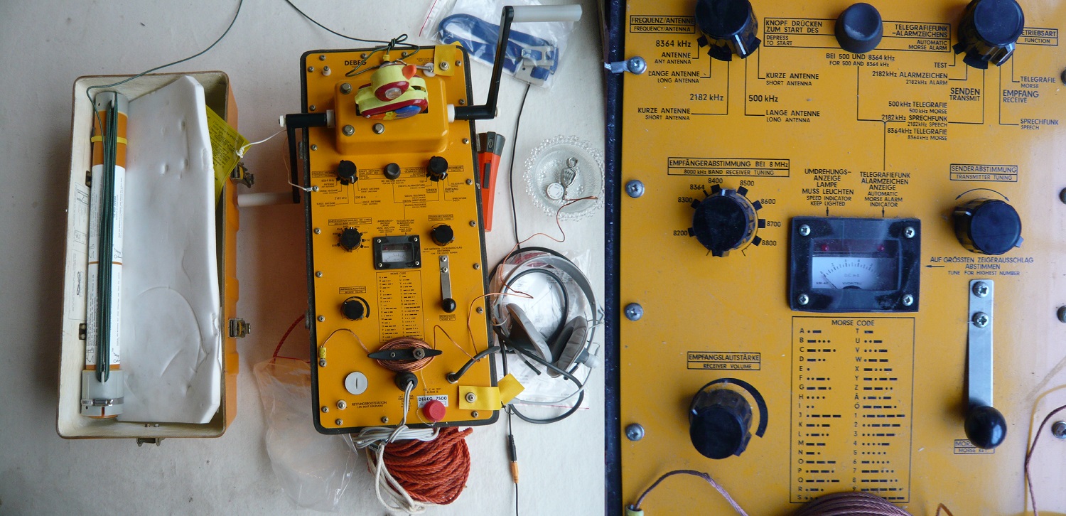 Kurbel drehen und schon geht's los, denn er sendet automatisch einen Code, so dass man bestimmen kann, von welchem Schiff der Notruf kommt.