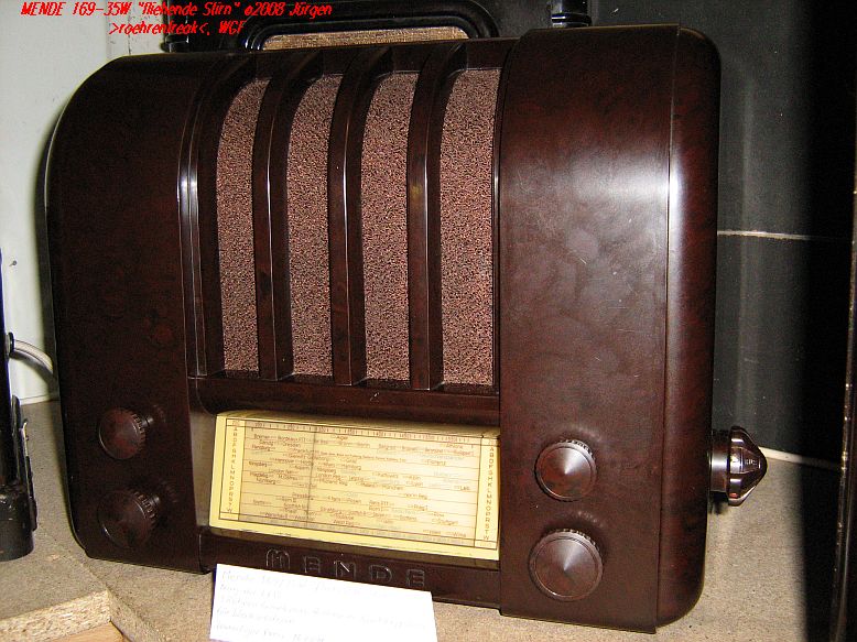die "Rhein-Main-Fraktion" (Flo, Siggi, Jürgen²) besuchte vergangenen Sonntag (8.Juni) die Radiobörse in Linsengericht und es wurde wieder jede Menge "Vakuum gekauft", also Röhren an denen auch noch ganze Geräte dran hingen. Während Flo bei einem wunderschön erhaltenen "Burggraf" weich wurde landete mein Herzilein auf einem äusserlich noch recht gut aussehenden MENDE 169-35W. Mittlerweile wurde er versorgt und hat Eingang in meine kleine Sammlung gefunden. Bis es jedoch soweit war gab´s reichlich "Fuddelarbeit" daran zu erledigen. So war die Netzleitung brandgefährlich beschädigt und musste leider komplett erneuert werden. Die Gleichrichterröhre RGN1064 hatte einmal tief eingeatmet, wurde also direkt getauscht und der nicht originale Netzteil-Elko verabschiedete sich trotz Nachformierens nach einer Betriebsstunde. Zwei neue und passend "verkleidete" wurden anstatt eingebaut. Auch die Kathodenkombo an der Endröhre aus 400Ohm und 20µF waren hinüber und wurden ersetzt. Nun gab das Gerät zwar schon wieder die ersten Töne von sich aber das was da kam war nicht gerade der Knaller. Den gab´s erst nachdem die unterbrochene Niederfrequenz-Drossel im Anodenkreis des Audions in zeitraubender Kleinarbeit repariert war. Schliesslich wurde noch die Lautsprecher-Membrane neu eingeklebt. Sie hatte sich komplett aus dem Korb gelöst, was zu einem heftigen Scheppern führte. Nach der obligatorischen Reinigung und Oberflächenbehandlung steht er nun neben seinem Bruder, dem E38N, im Sammler-Regal der 30er Jahre-Geräte.