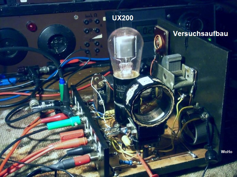 Der erwähnte Schaltungsvorschlag von 1931 hatte ebenfalls meine Aufmerksamkeit geweckt. Und weil's so einfach ist, habe ich das mal erprobt, mit der originalen Röhre...