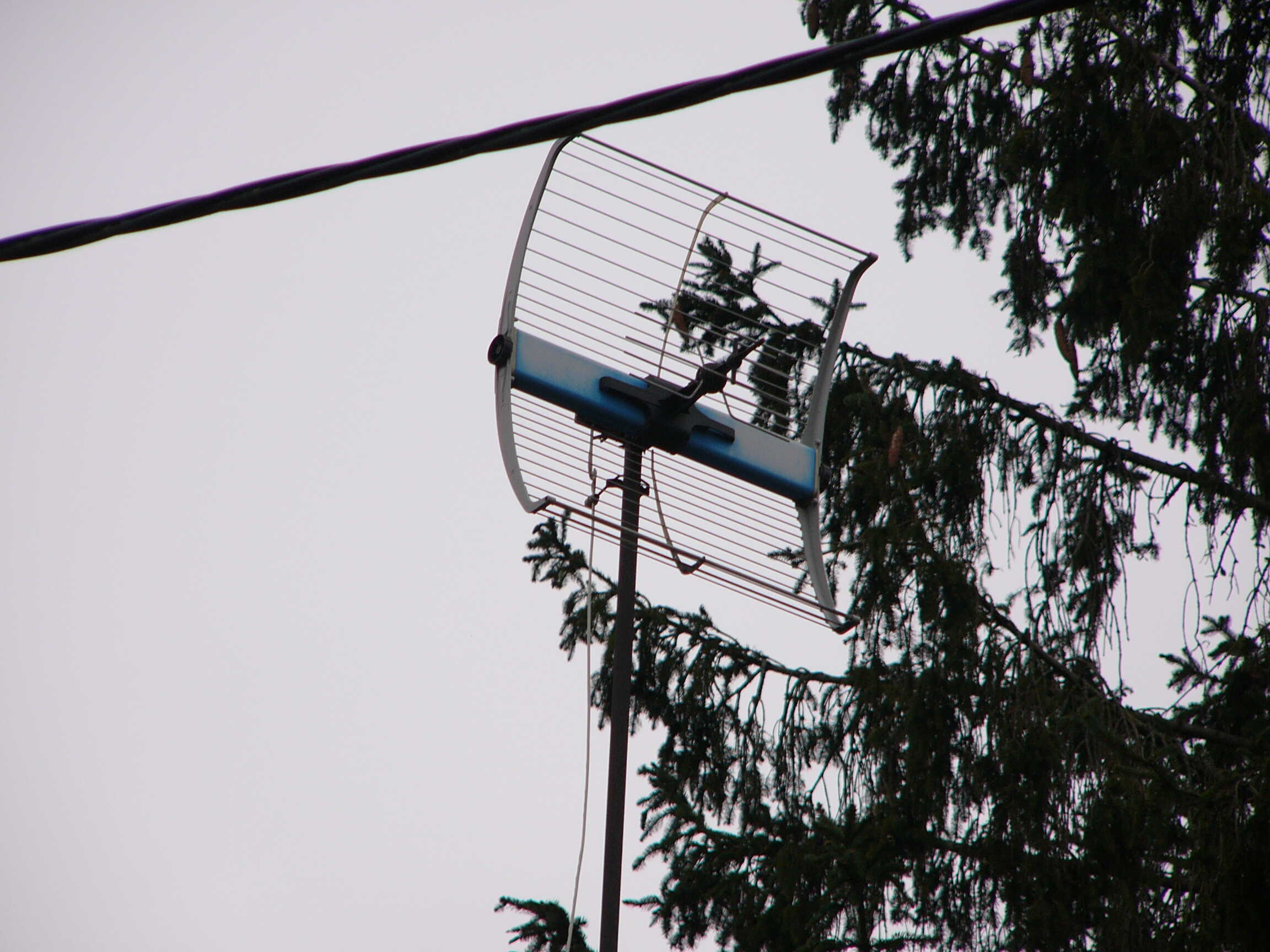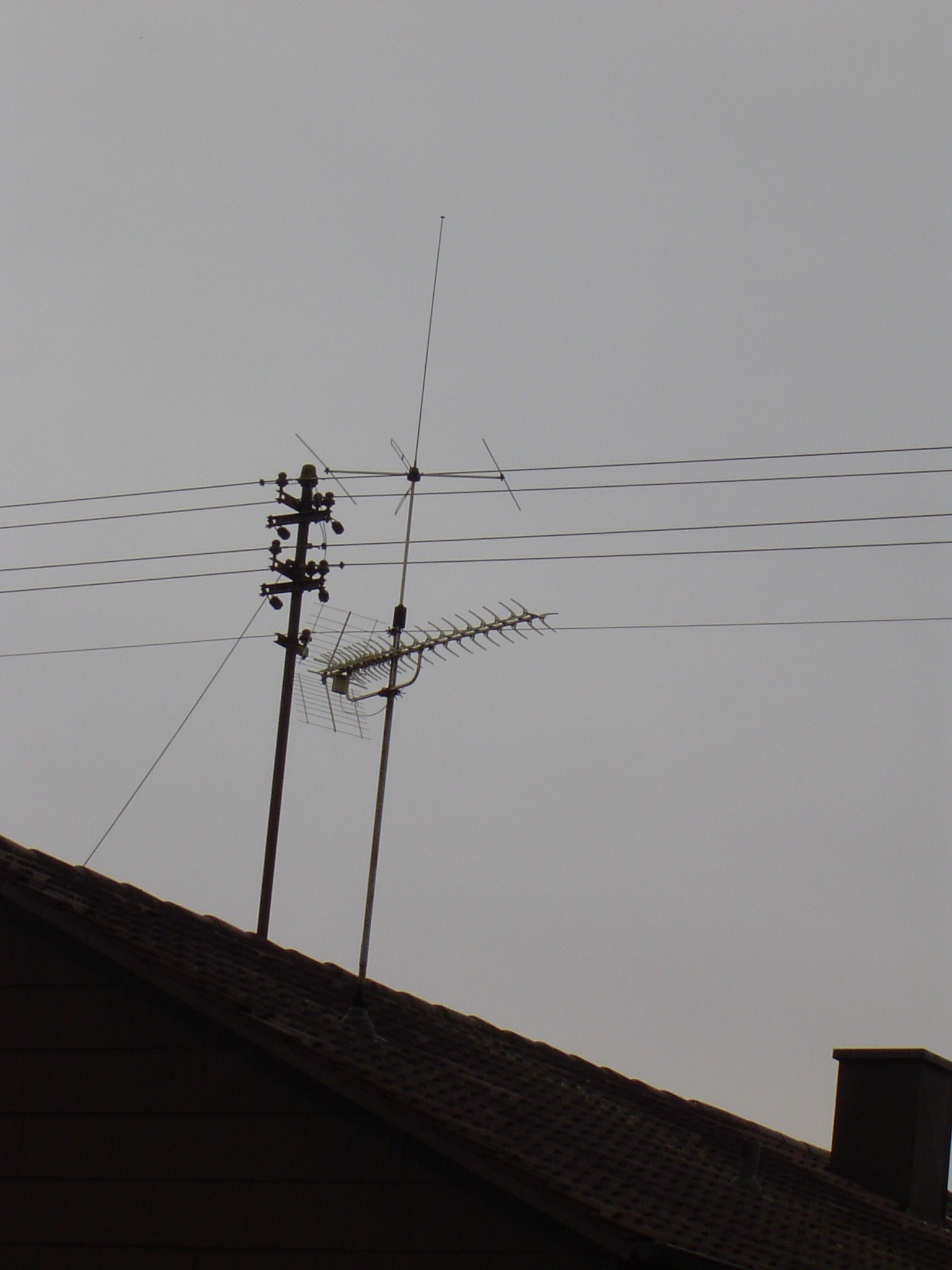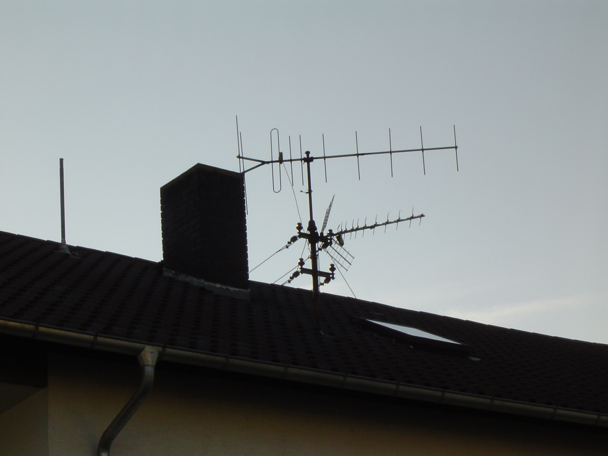 Dazu müssten die natürlich identifiziert werden. Oben Kathrein ARA 30. LMK-Rute (mit Prasselschutz) und unten eine 3-Element-UKW-Yagi. Der Dipol ist verbogen.