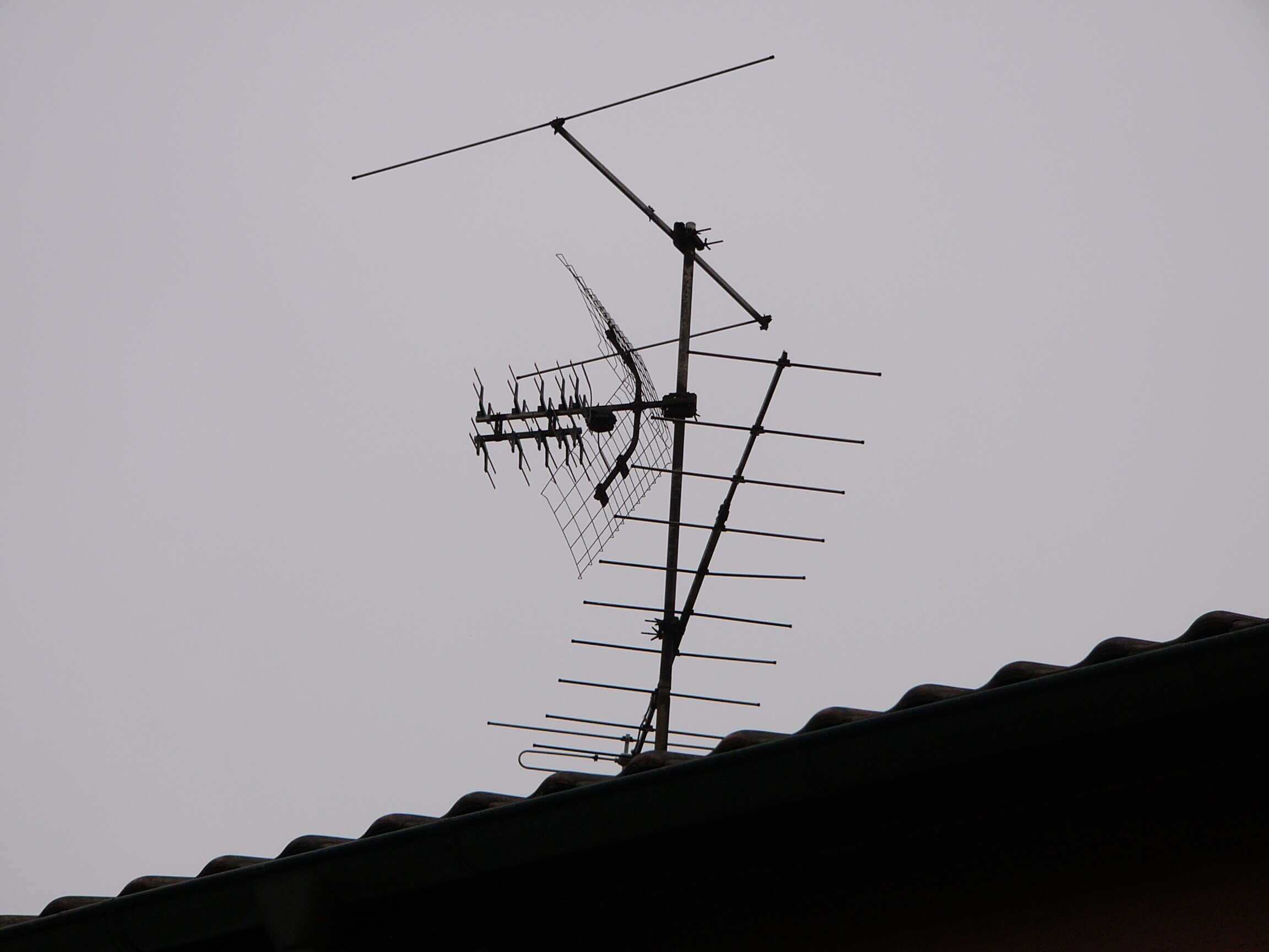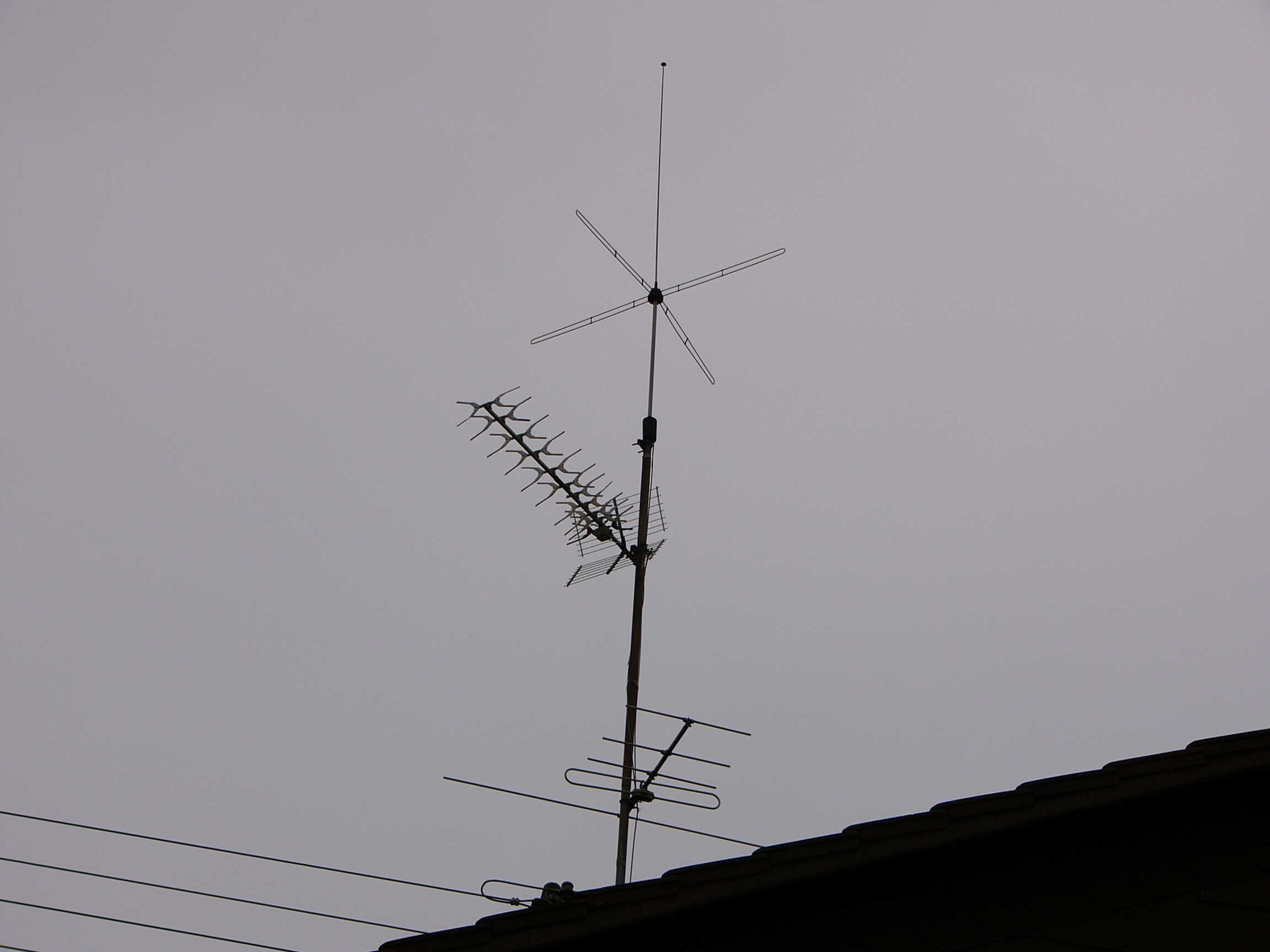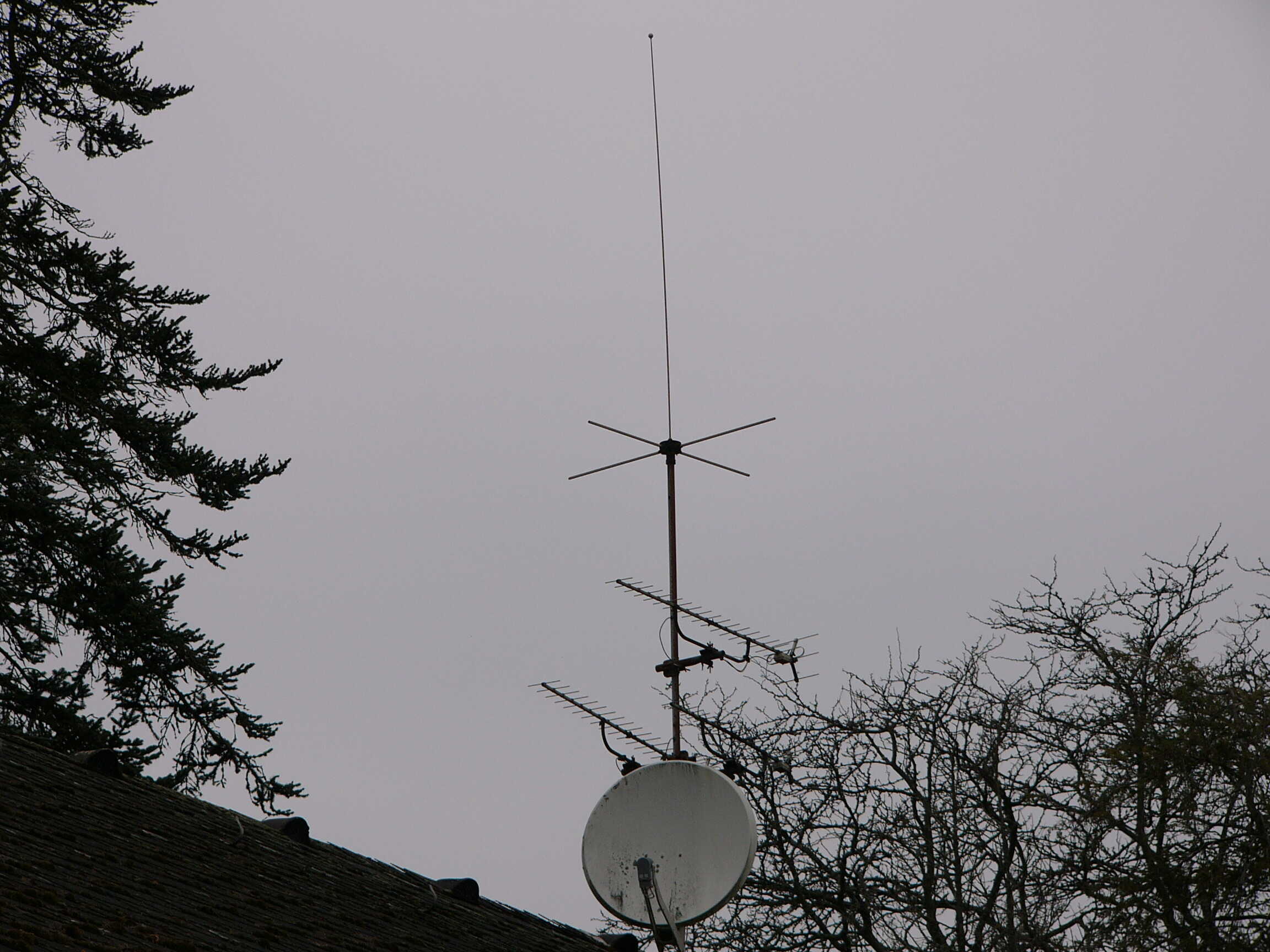 Dazu müssten die natürlich identifiziert werden. Oben Kathrein ARA 30. LMK-Rute (mit Prasselschutz) und unten eine 3-Element-UKW-Yagi. Der Dipol ist verbogen.