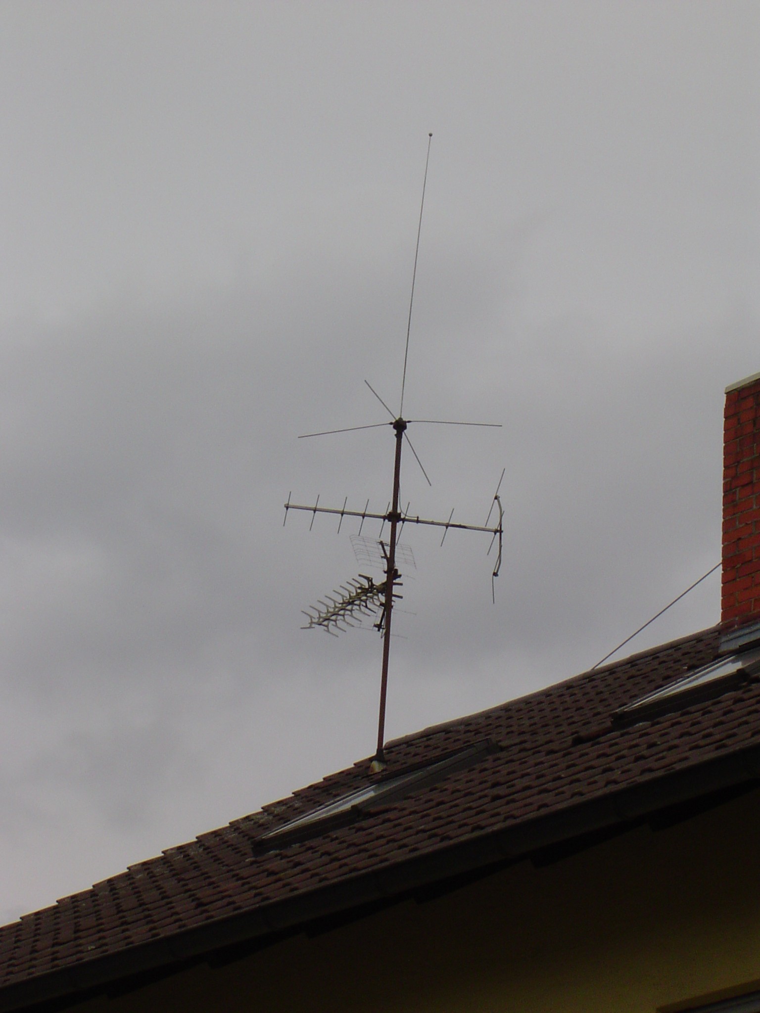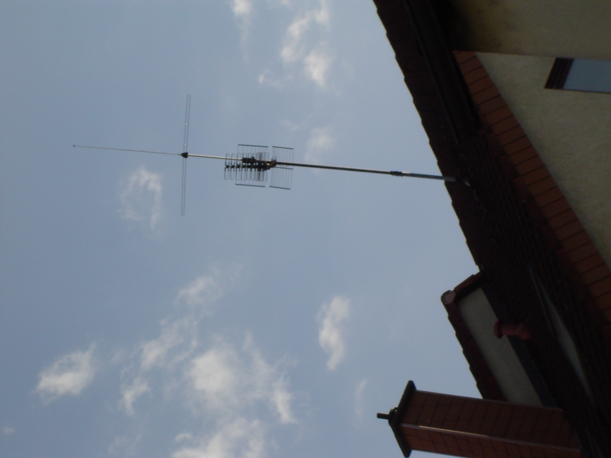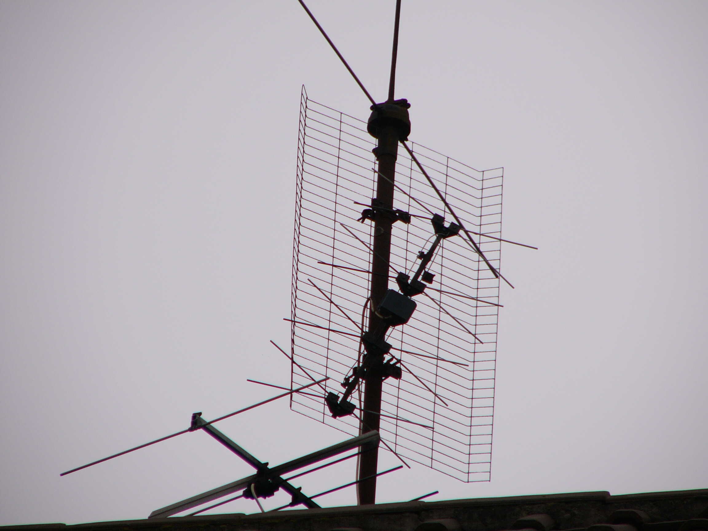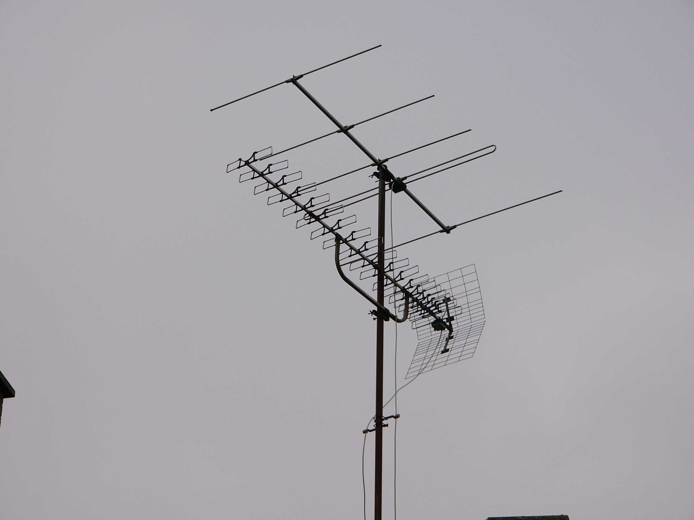 Hier kenne ich leider keine Modellbezeichnungen. Muss aber so Ende 60er/Anfang 70er entstanden sein. Auf Fotos Ende der 70er war diese Antenne schon so vorhanden. Der Reflektor der UHF-Yagi ist schon halb weggegammelt.