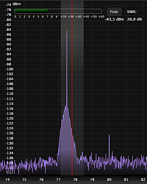 Bulova: weißt Du bei Deinem Spektrumbild auch die RBW? Bei meinen Aufnahmen beträgt sie bei 9 Hz. Ich frage das, weil die benachbarte Höhe im Rauschteppich bei Deiner Aufnahme sehr niedrig liegt.