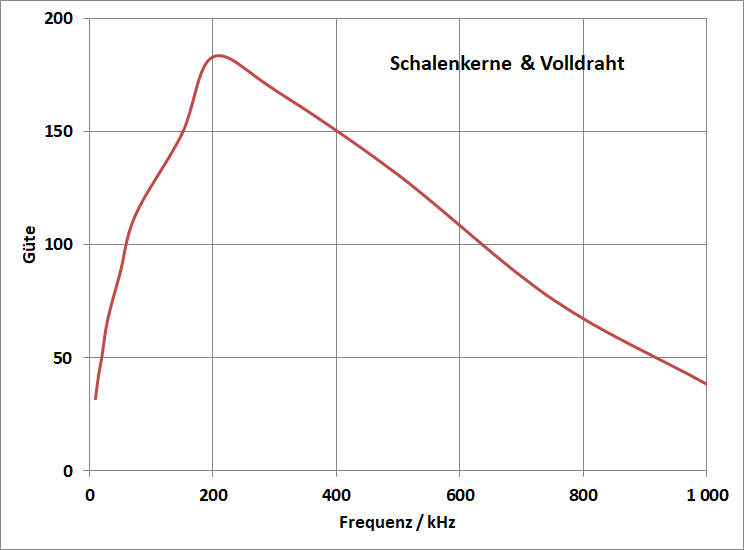 die Verläufe sind ganz gut, wenn man bedenkt, dass die senkr. Achse bei 80 beginnt. Auch der blaue Verlauf ist okay, da ist man relativ breitbandig. Die Messung über die Ankopplung ist eigentlich auch adäquat, denn hier wird ja auch die Empfangseigenschaft mit berücksichtigt. (Theoretisch könnte man z. B. mit einem Schalenkern und Innenspule eine enorme Güte herausholen, aber er ist kaum empfindlich für Felder von außen.)