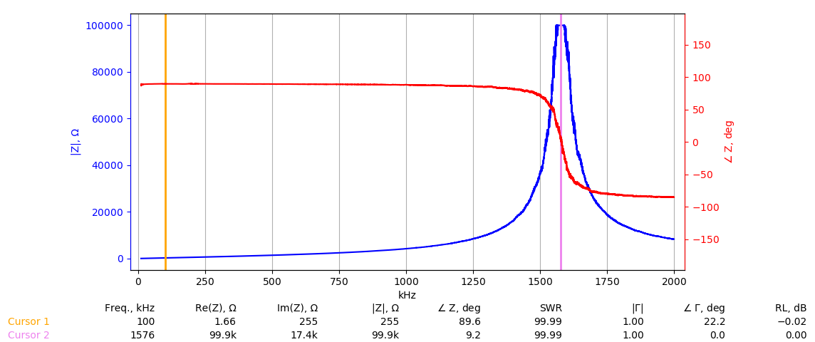 P.S. Anbei die Güteverläufe meiner beiden VLF-Ferritantennen.