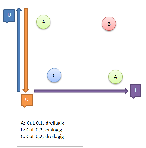 1) Der kompakte Wickel mit dem 0,1er-Draht (A) hat Vorteile bezüglich Empfangsstärke unterhalb 100 kHz. Gleiche Ausführung hat Vorteile bezüglich Güte oberhalb 200 kHz. 2) Der verteilte Wickel mit 0,2er-Draht (B) hat Vorteile bezüglich Empfangsstärke oberhalb 100 kHz. 3) Der kompakte Wickel mit 0,2er-Draht (C) hat Vorteile bezüglich Güte unterhalb 200 kHz.