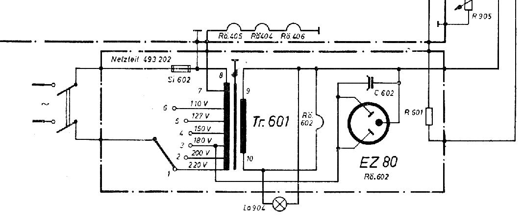 Nach dem Prinzip 2 in 1 die Darstellung beider Varianten in einer Schaltung. Die Heizung der Röhre EZ80 wird mit einer getrennten Wicklung versorgt (Sekundär). Es besteht keine leitende Verbindung zur Primärwicklung. Das entspricht dem Prinzip des Trenntrafos. Die Primärwicklung hat mehrere Anzapfungen. Aus einer Anzapfung heraus wird die Anode der EZ80 mit Spannung versorgt. Es besteht eine direkte Verbindung mit dem Stromnetz. Hier haben wir das Prinzip des Spartrafos. Alles klar?