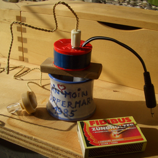 Unser Salzbatterie-Verstärker ist jetzt fast serientauglich! Er sitzt in einer kl. Salmi-Dose, diese wiederum auf einem Brettchen, an dessen Unterseite Anode und Kathode befestigt sind. Setzt man das nette Ding auf einen Eierbecher mit Salzwasser, läuft alles super! - - - - - bis auf: manchmal stirbt der Kleine. Er läßt sich dann zum Leben erwecken, indem man einen langen Draht an irgendwelche Lötstellen hält. Mal klappt es bei der einen, mal bei der anderen Stelle, am besten am Emitter des Transistors, und er läuft wieder. Wackler ausgeschlossen; Verstärker mehrfach aufgebaut, auch mit Auswechsel-Teilen - Ergebnis immer gleich. Vielleicht hat jemand noch eine Idee, um das niedliche Kästchen ganz zuverlässig zu machen?