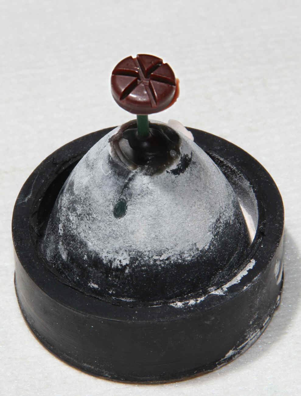 Auf dem Bild sieht man den Wachsrohling für den Kopf einer Zierschraube von einer Philetta.