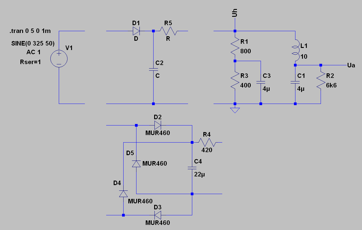 Die geschätzte(!) Induktivität der Drossel und ihr geschätzter(!) ohmscher Anteil bestimmen natürlich wesentlich die Restwelligkeit der Anodenspannung. Hier wäre es schön, wenn Du nachmessen (mit Gleichstrombelastung) und reale Werte einsetzen könntest.