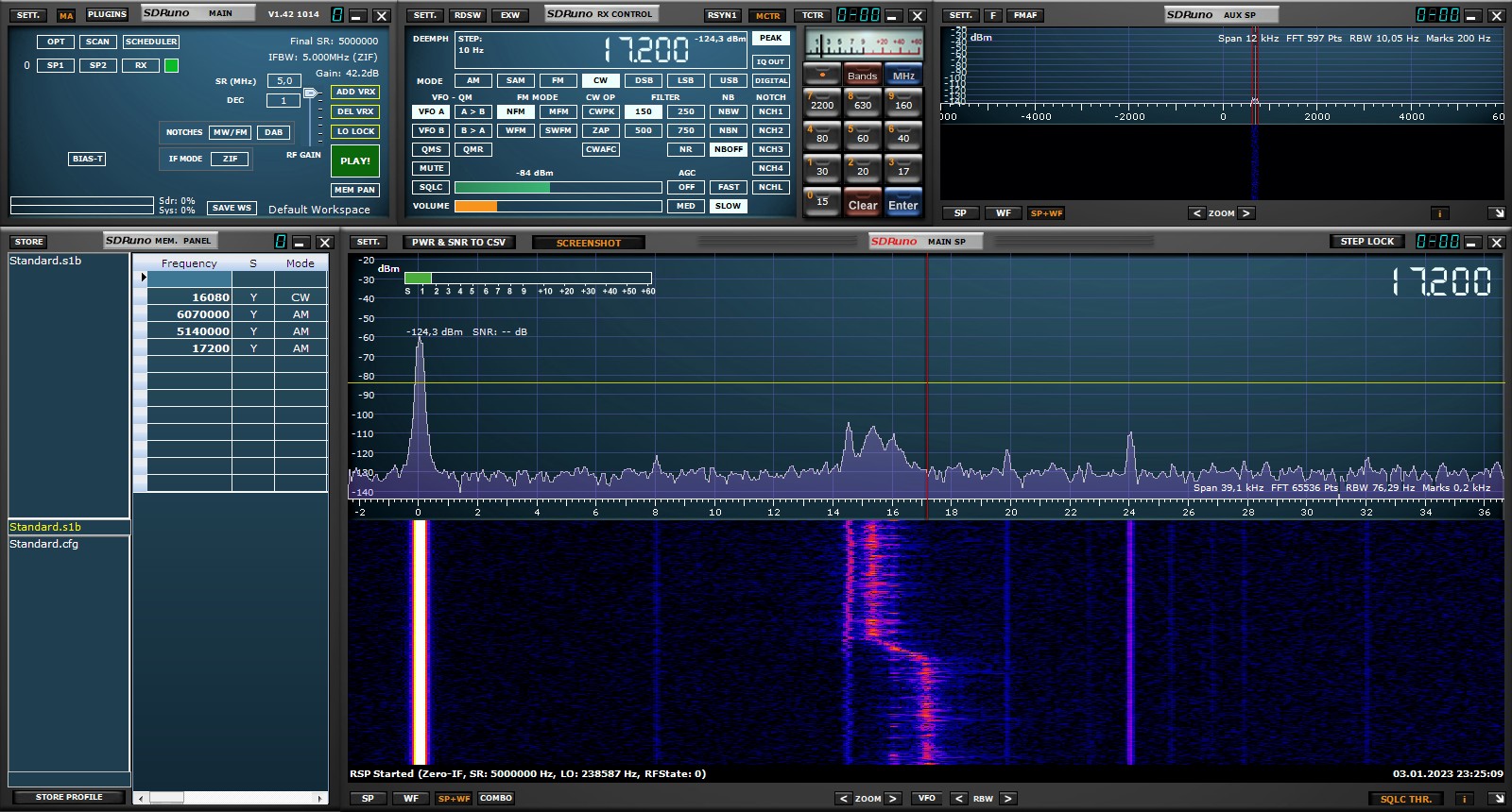 ich kann mit einem Ferritring zwar abstimmen, aber der Bereich von knapp 2kHz ist doch sehr klein. Hier ist ein Drehko doch besser geeignet. Ich habe mal einen Snapshot gemacht. Diesmal habe ich hierfür meinen SDR RSP1A als Empfangsteil verwendet.
