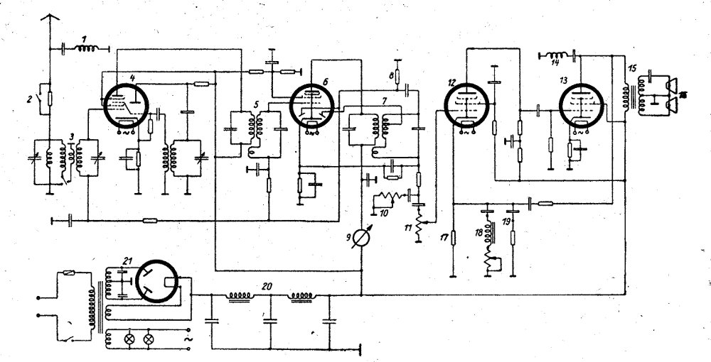 Es gab schon Vorkriegsmodelle mit sehr guten NF Teil , die hatten auch schon große Klangregel Möglichkeiten , mehre Lautsprecher , Frequenzabhängige Gegenkopplung , Bandbreitenregelung gutes Netzteil usw . Hier ein Beispiel von einer Prinzipschaltung :
