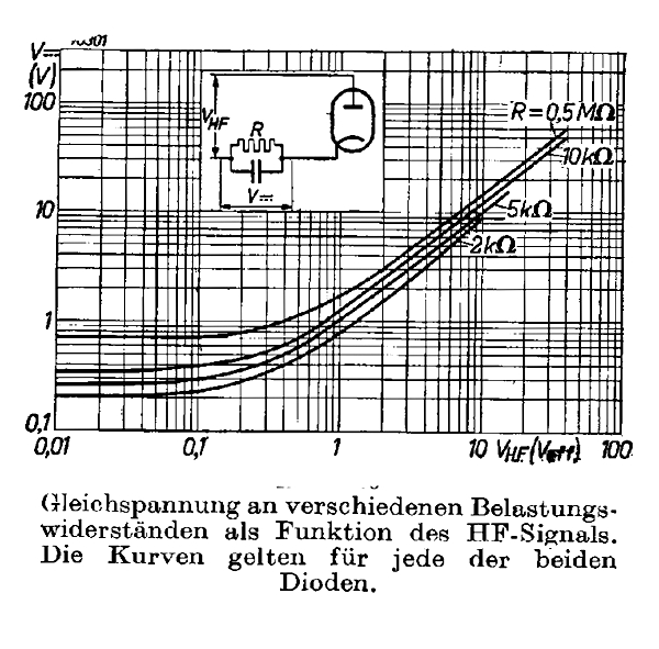 jetzt peil ich das erst mal. Ich glaube der Fehler lag bei mir. Habe einen 2-Kreiser nach den Bandfilterprinzip gebaut. Da liegt die Kathode auf Masse. Da gibt es pro Kreis nur eine Wicklung. So ist es mir möglich, eine fest eingestellte (Anoden) RK, die auf beide Kreise wirkt, zu realisieren. Die Antenne muss mittelst Drehko auf Resonanz gebracht werden (1.Kreis). Der 2. Kreis wird mit Trimmer synchron auf den 1. Kreis abgestimmt. So ist es möglich mittelst Doppeldrehko beide Kreise abzustimmen. Der Ant. Drehko wird dann nicht mehr verändert. Mich hatte, die von dir angeratene, Schwundregelung interessiert. Das funktioniert bestens. Als Referenz nehme ich einen anderen Empfänger und muss feststellen, das ich am Tag mehr Sender in hörbarer Qualität empfange. Nun zu meinen Problem einer Röhrendiode. Die möchte ich gern für die 2 Ge. Dioden verbauen.