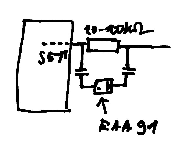 Eine neue Idee für die Regelspannungserzeugung hab ich gerade gehabt.. Die EAA 91 Diode in Serie in GL - Flussrichtung für das Schrimgitter der Audionröhre legen. Zwischen Schirmgitter und Sieb C. Wenn dort noch HF Reste sind müssten die in der Sperrphase noch da sein und die könnte man mit der zweiten Diode der EAA 91 in Regelspannung verwandeln. Nur so eine Idee.... Oder einfach einen R in Serie mit dem SG Anschluss und über C die HF auskoppeln und Gleichrichten. Ich glaube die erste Idee ist zu kompliziert. Der Anschluss an Katode und Anode der EAA 91 müsste über je 1 C an Katode und Anode sein um eine neg. Spannung zu erhalten ohne die Gleichspannung des Schirgitters.