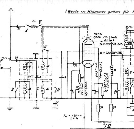 Hab noch ein historisches Vorbild gefunden für eine HF Drossel im Anodenkreis der ersten HF Röhre. Es ist ein Schaltplanausschnitt eines Dreiröhren - Dreikreisers von 1933 "Eswe 343 G". Bauteil 10 wird eine HF Drossel sein. :''} MFG Nobby