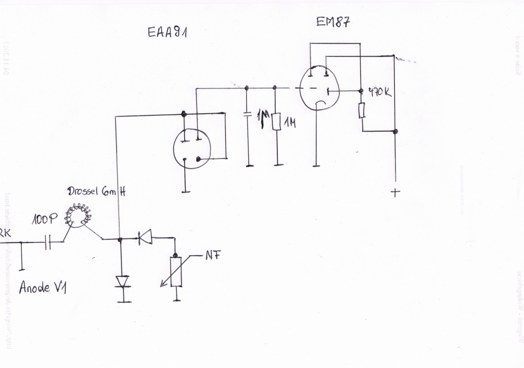 Auch von mir Glückwunsch zum Geburtstag nachträglich, war gestern mit der Erklärung zu beschäftigt. Probehalber mal die zweite Halbleiterdiode vor dem LS Poti brücken. Mal gucken was dann passiert. Eine weiterer Test wäre die Diode der EAA 91 die zur EM geht über einen kleinen Koppel C vor der Drossel anzuschließen. Die Katode von dieser Diode auf Massse, die Verbindung zur Anode GL lösen und die Anode über einen kleinen Koppel C 10 - 50 pF an die Anode der HF Röhre zu legen. Man braucht so um die 7 V eff. HF Spannung um die - 10 V für Vollauschlag der Leuchtbalken zu bekommen.