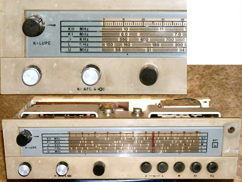 Kurzwellenlupen im transistorisierten Reiseempfänger wurden von Stern Radio Berlin schon früher eingebaut. In der Typenreihe Vagant/ R110 gibt es die Ausführungen Tropic mit drei Kurzwellen und Orient mit zwei Kurzwellenbereichen, Baujahr 1963/64 und folgende mit Lupe, überwiegend im Kunststoffgehäuse eingebaut. Der Elite ARE71 ist eine Sonderfertigung für die Armee. Die Transistoren auf dem Kühlkörper stabilisieren die Eingangsspannung. Deine Schlußfolgerung Akku vom LKW oder vom PKW ist richtig. Die Ausführung der Teleskopantenne im Stern Elite 2000/ 2001 ist, abhängig von Verfügbarkeit und Fertigungszeitraum, unterschiedlich. Man findet mehrere Varianten mit Metallkopf oder Kunststoffkopf in weiß oder in schwarz.